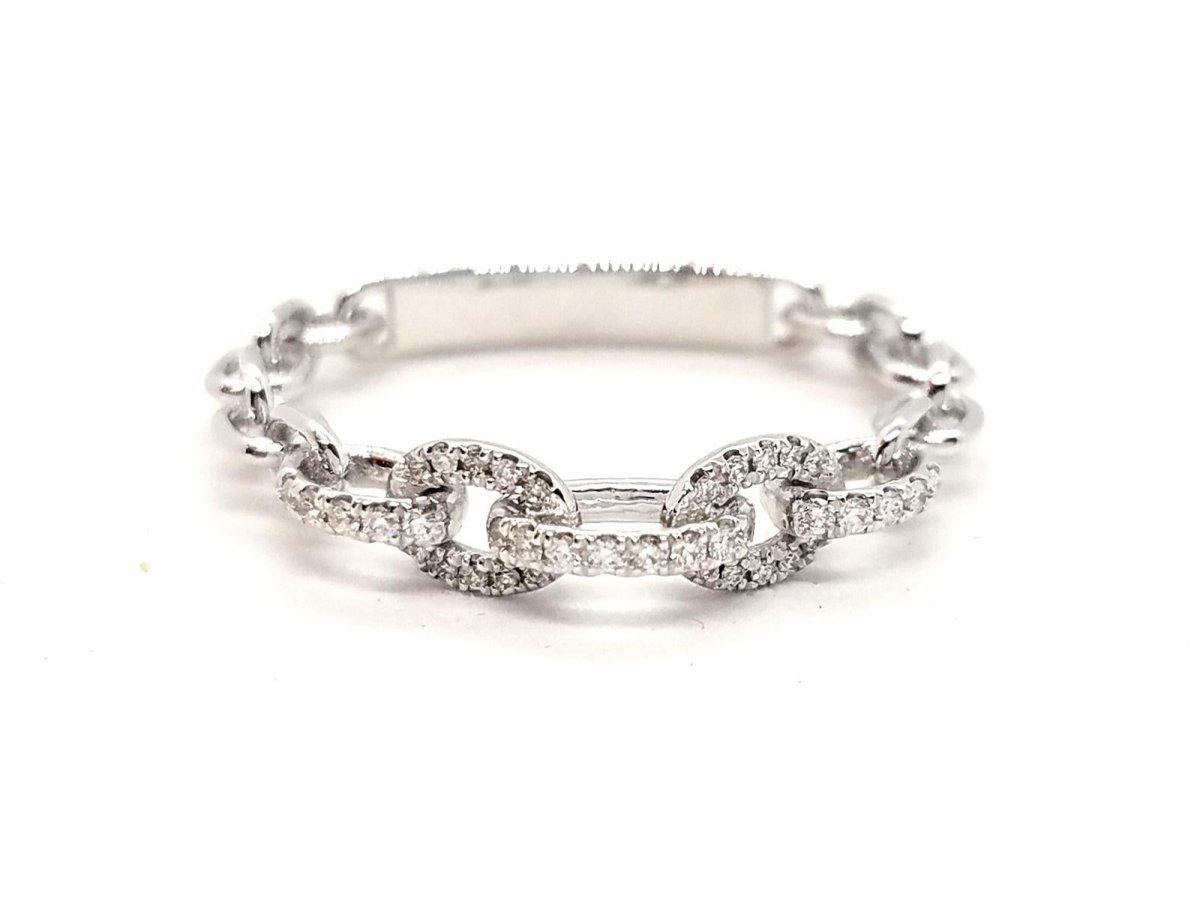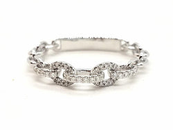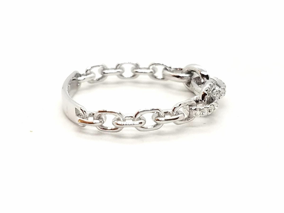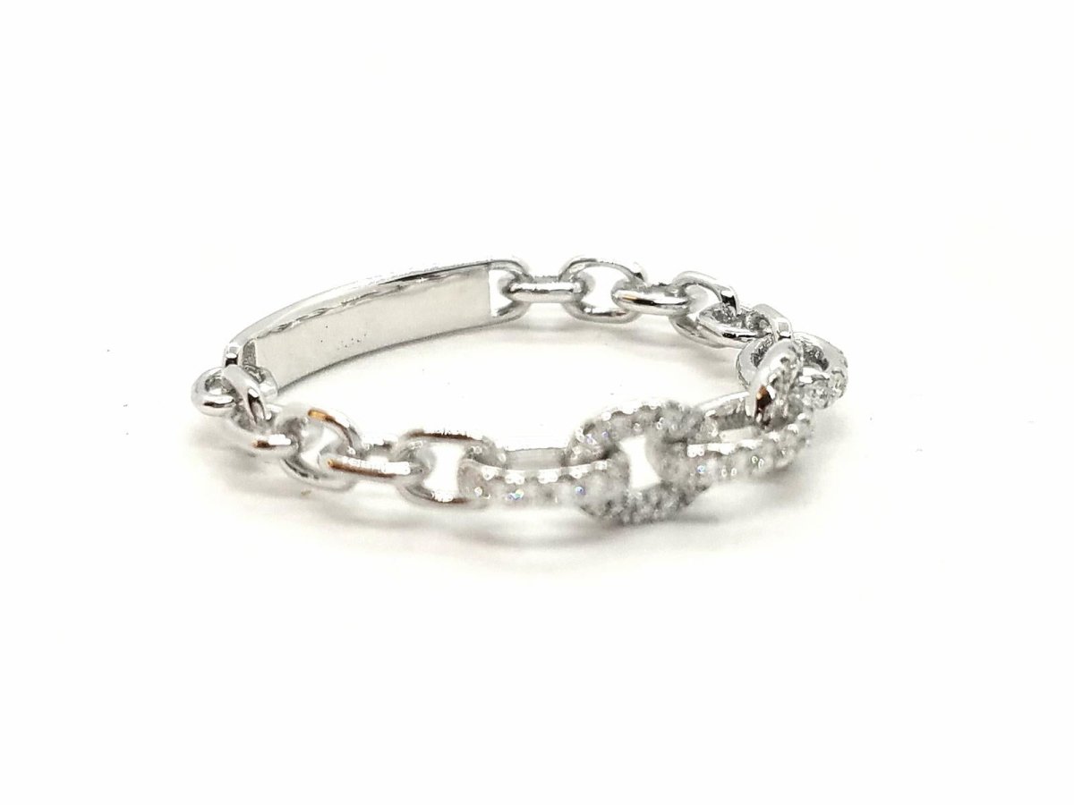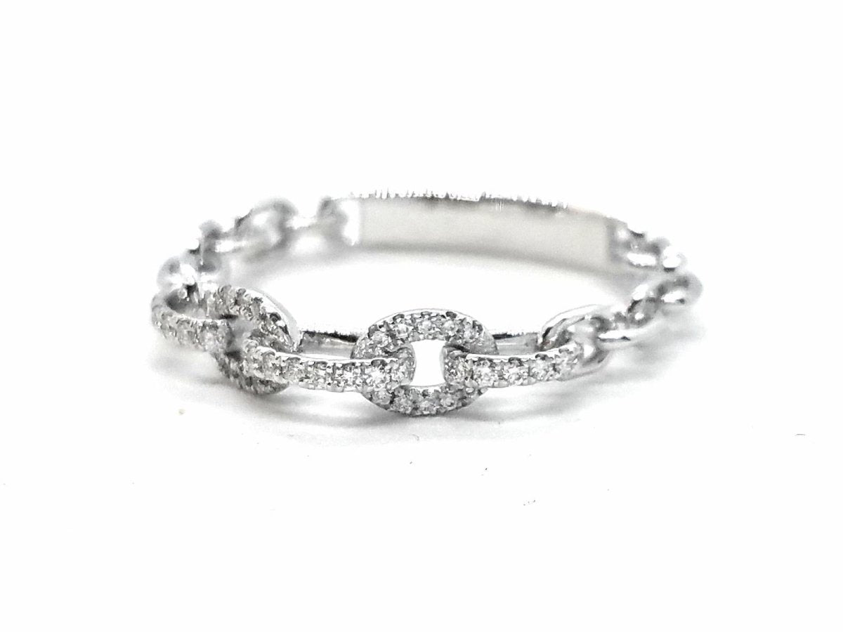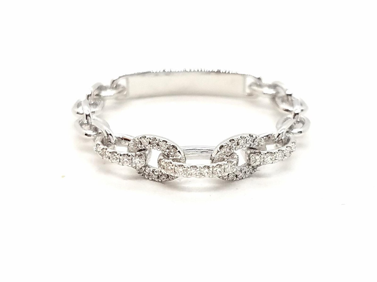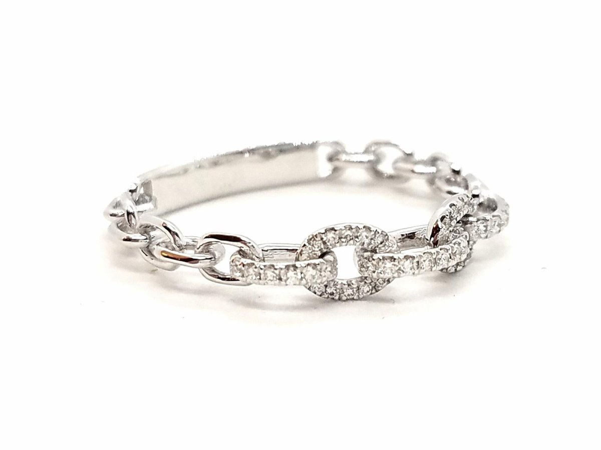 Bague en or blanc 750 millièmes (18 carats). forme maillons pavés de diamants taille brillant pour environ 0.18 ct au total. tour de doigt: 54. largeur sur le dessus: 0.44 cm. poinçon tête d'aigle. poids total: 2.29 g. état neuf