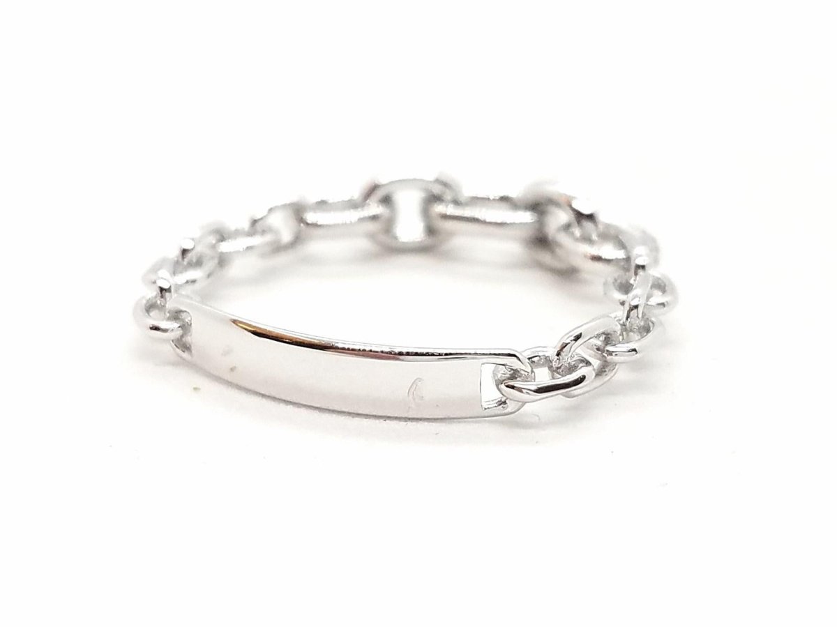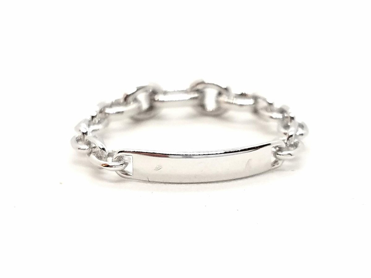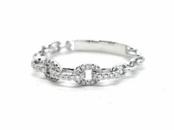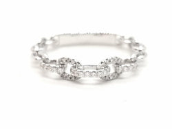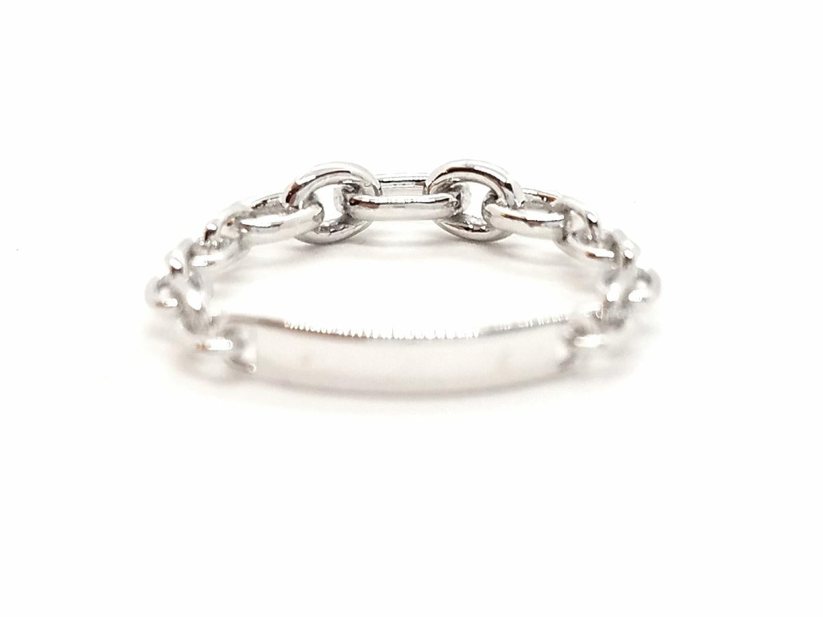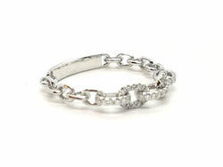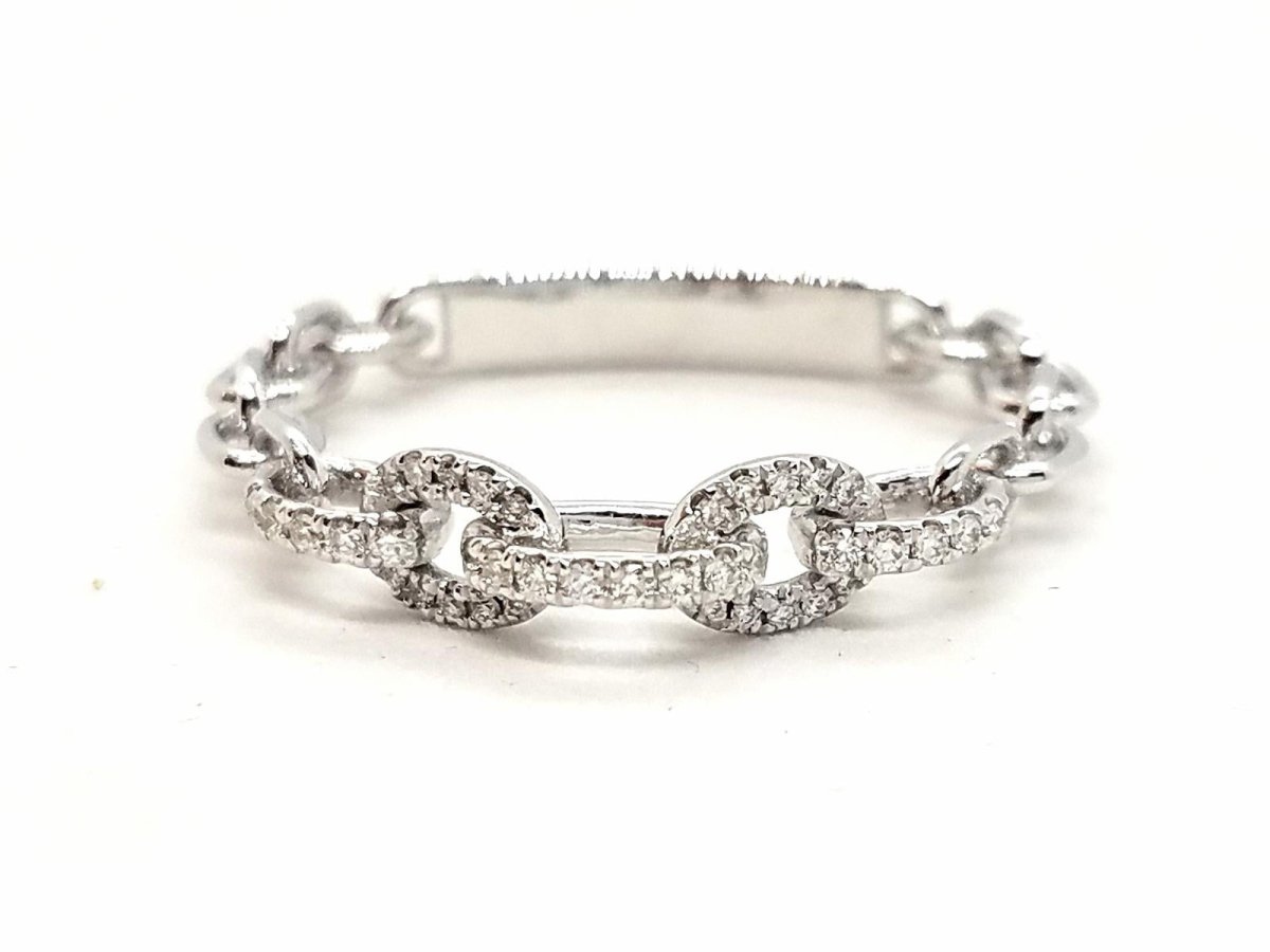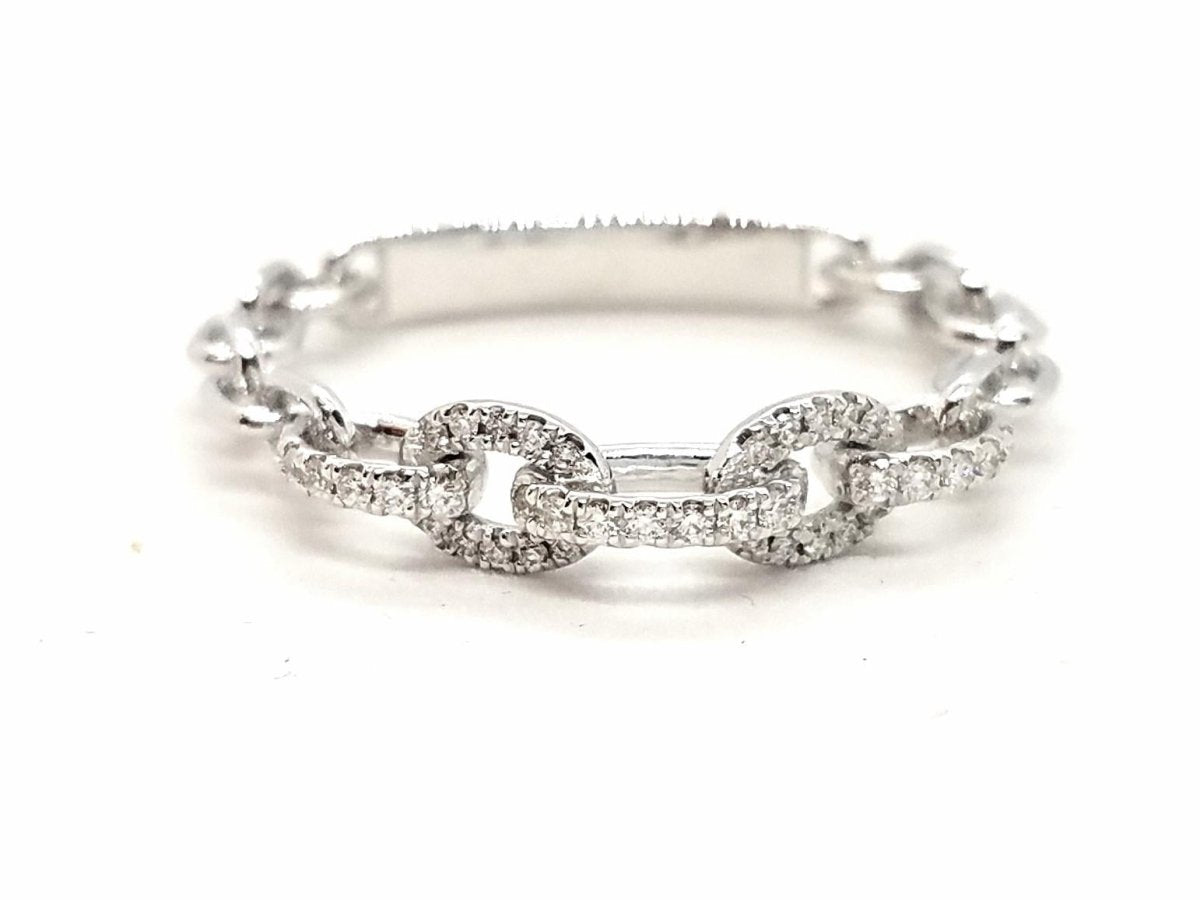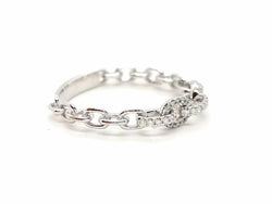 Bague en or blanc 750 millièmes (18 carats). forme maillons pavés de diamants taille brillant pour environ 0.18 ct au total. tour de doigt: 54. largeur sur le dessus: 0.44 cm. poinçon tête d'aigle. poids total: 2.29 g. état neuf