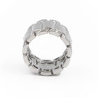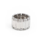 Bague large en or blanc 750 millièmes (18 carats). sertie de 44 diamants taille brillant. d'environ 0.01 ct chacun. poids total diamants: environ 0.44 ct. largeur sur le dessus: 1.33 cm. taille de doigt: 52. poids total: 15.92 g. poinçon hibou. excellent état