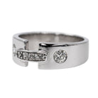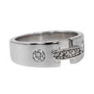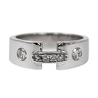 Bague en or blanc 750 millièmes (18 carats). sertie de 2 diamants taille brillant. d'environ 0.12 ct chacun. et 5 diamants taille brillant. d'environ 0.01 ct chacun. poids total des diamants: environ 0.29 ct. largeur sur le dessus: 0.65 cm. tour de doigt: 47. poids total: 5.71 g. poinçon hibou. excellent état