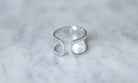 Bague Space Age en or blanc 18Kt (poinçon: hibou). Travail des années 70, signé Pierre Cardin. Poids brut: 4,94g Tour de doigt: 55 (diamètre 17.50/ US 7,25). Hauteur: 1.10 cm État: très légères micro rayures, voir photos. Les bijoux des années 70 s’inspirent de la nouvelle conquête de l’espace et des micro-technologies, ils combinent ainsi design épuré et liberté d'expression. Toutes nos bagues anciennes