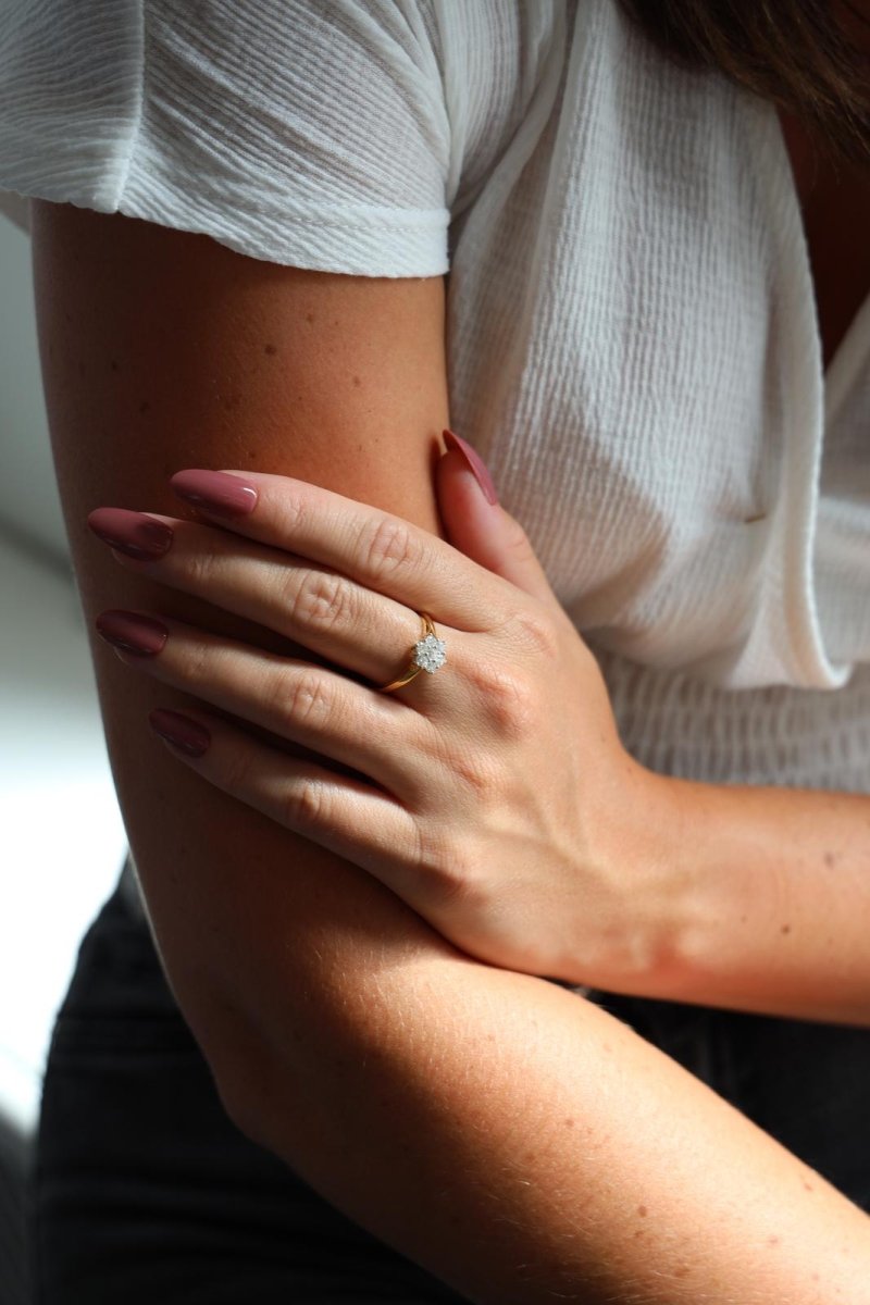 Bague en or jaune 750 millièmes (18 carats). sertie de 7 diamants taille brillant pour 0.50 ct au total. tour de doigt: 56. largeur sur le dessus: 0.88 cm. poids total: 3.25 g. poinçon tête d'aigle. état neuf