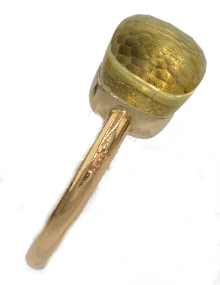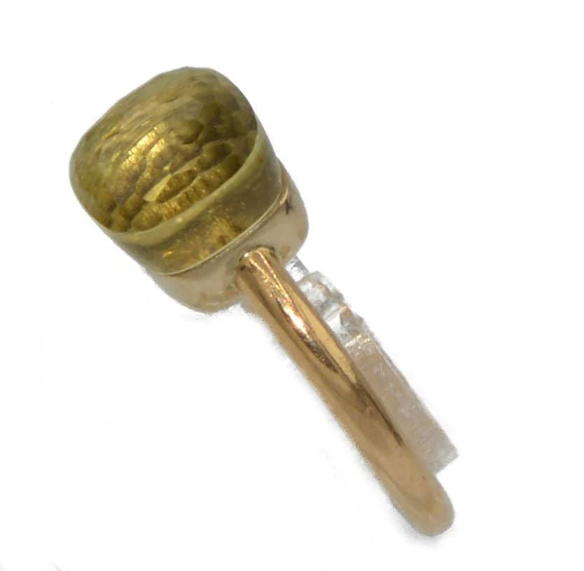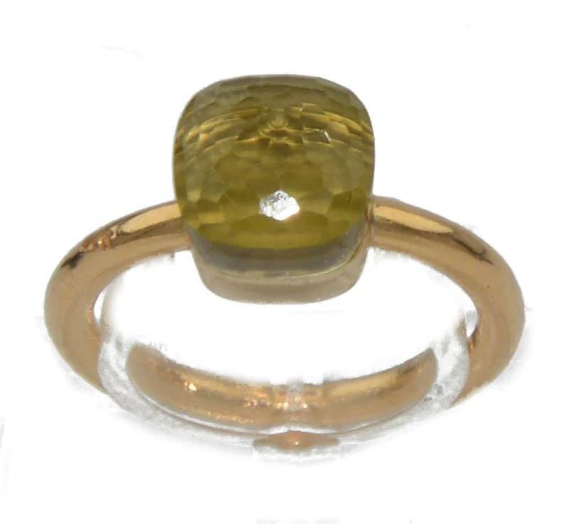Très jolie bague de la maison italienne Pomellato modèle Nudo PM en or rose  ornée en son centre d'un cabochon facetté en quartz lemon, sur un élégant anneau bombé. Matière : Or rose 18k Poinçon : Tête d'aigle Poids :5,1grs Longueur :0,7cm Largeur : 0,7cm Tour de doigt modifiable :48 Pierre: Quartz Lemon Période: Année 2010