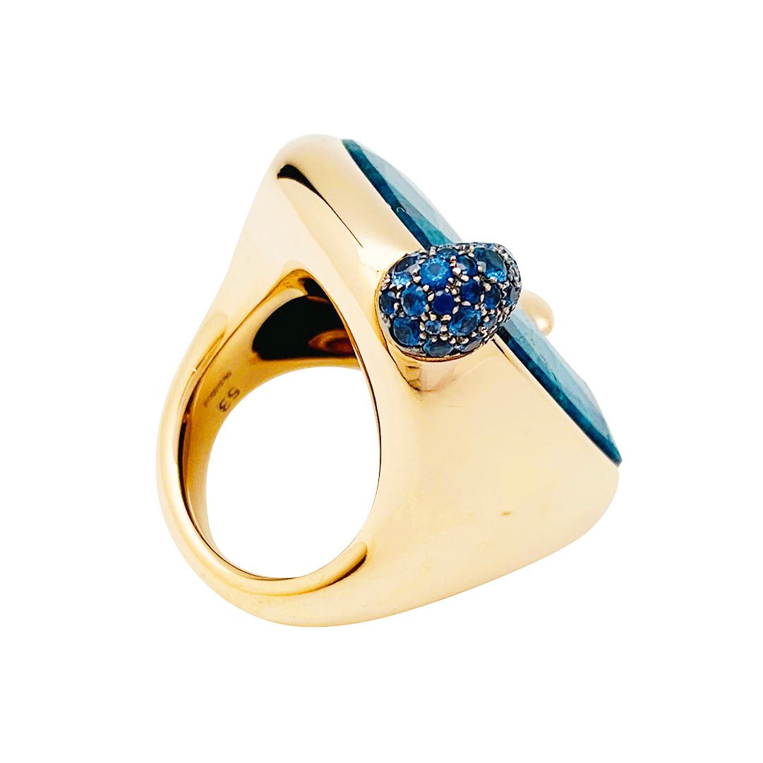 Bague POMELLATO, "Le grand bleu", en or rose, chrysocolle et saphirs