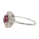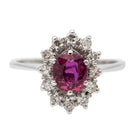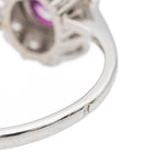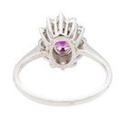 Bague pompadour sertie d'un saphir rose et de diamants. en or blanc 750 millièmes (18 carats). 1 saphir rose taille coussin rectangle. d'un poids d'environ 0.89 ct. entouré de 12 diamants taille huit/huit. d'un poids total d'environ 0.36 ct. (chaque diamant d'un poids d'environ 0.03 ct). largeur sur le dessus: 1.35 cm. tour de doigt: 54. poids total: 3.67 g. poinçon tête d'aigle. excellent état