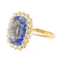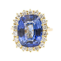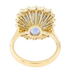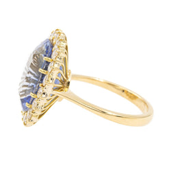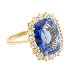 Bague pompadour en or jaune 750 millièmes (18 carats). sertie d'une améthyste taille coussin. environ 7.65 cts. ainsi que de 18 diamants taille brillant. environ 0.06 ct chacun. Poids total estimé des diamants: 1.08 ct. Tour de doigt: 55. Largeur sur le dessus: 2.03 cm. Poids total: 7.65 g. poinçon hibou. excellent état