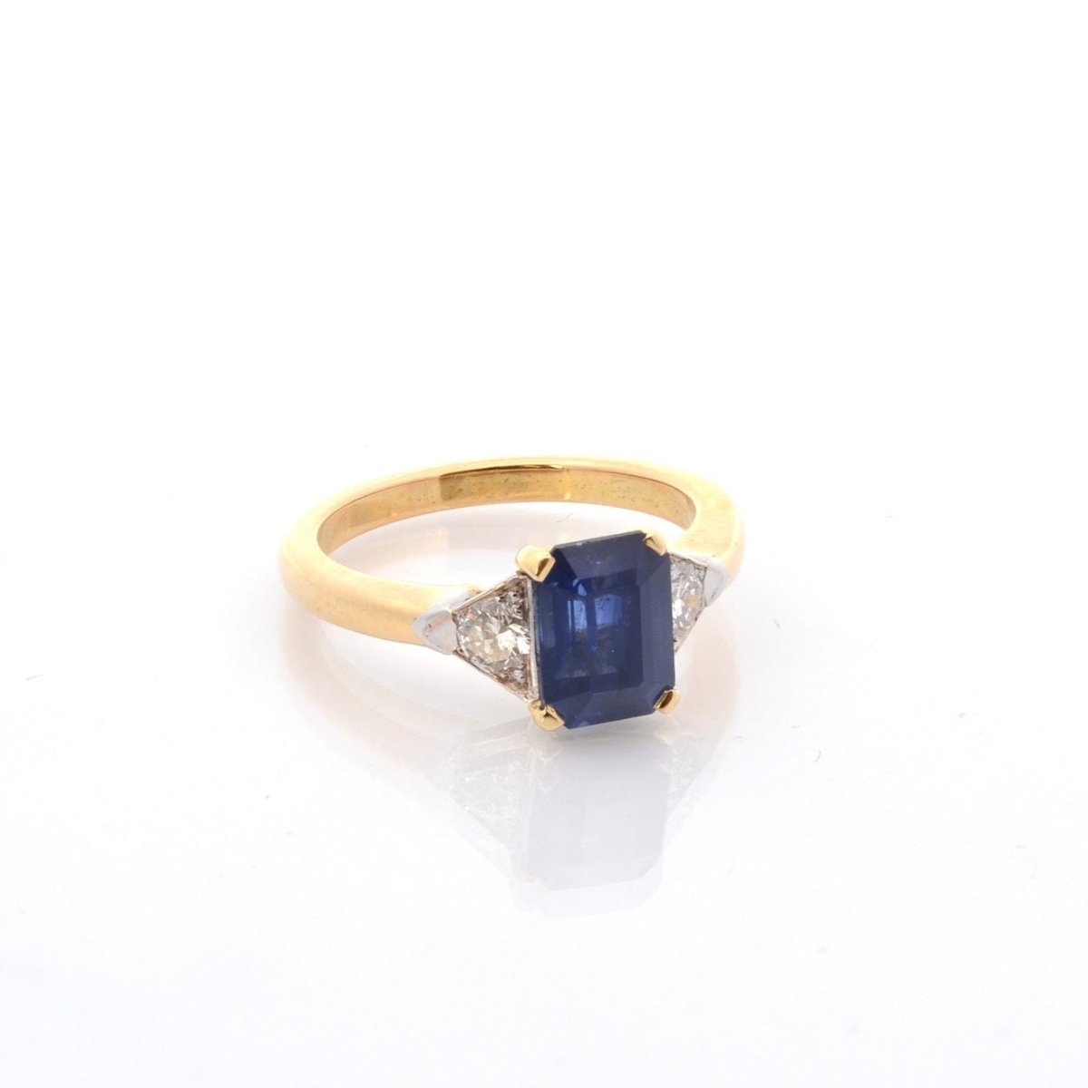 Bague en or 18 carats et platine, sertie d’un saphir et encadré de deux diamants