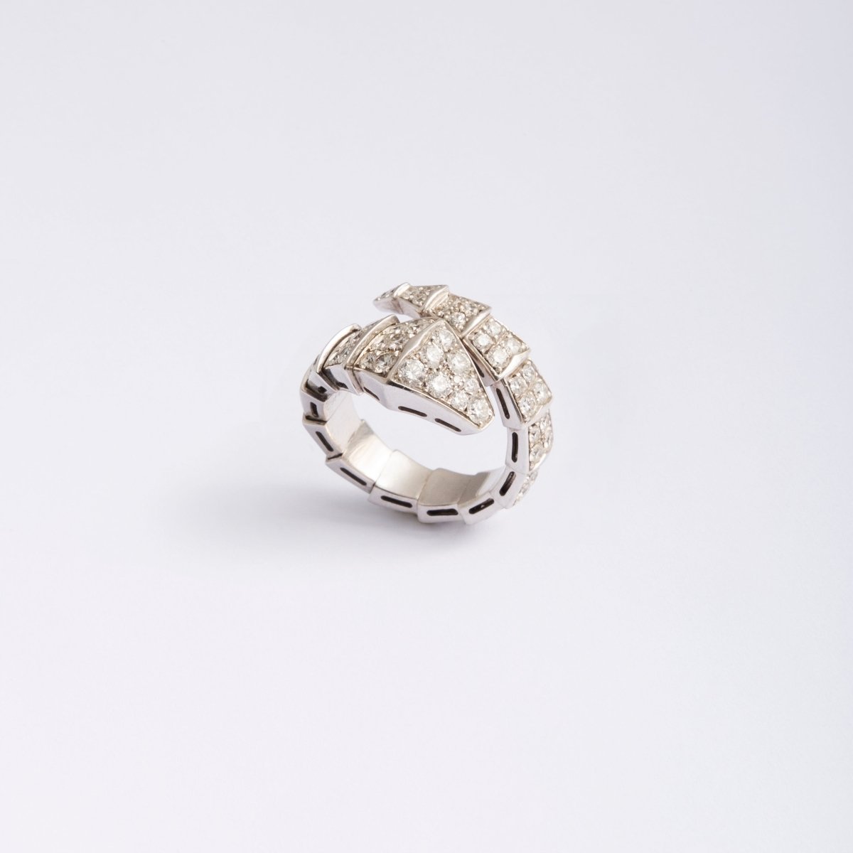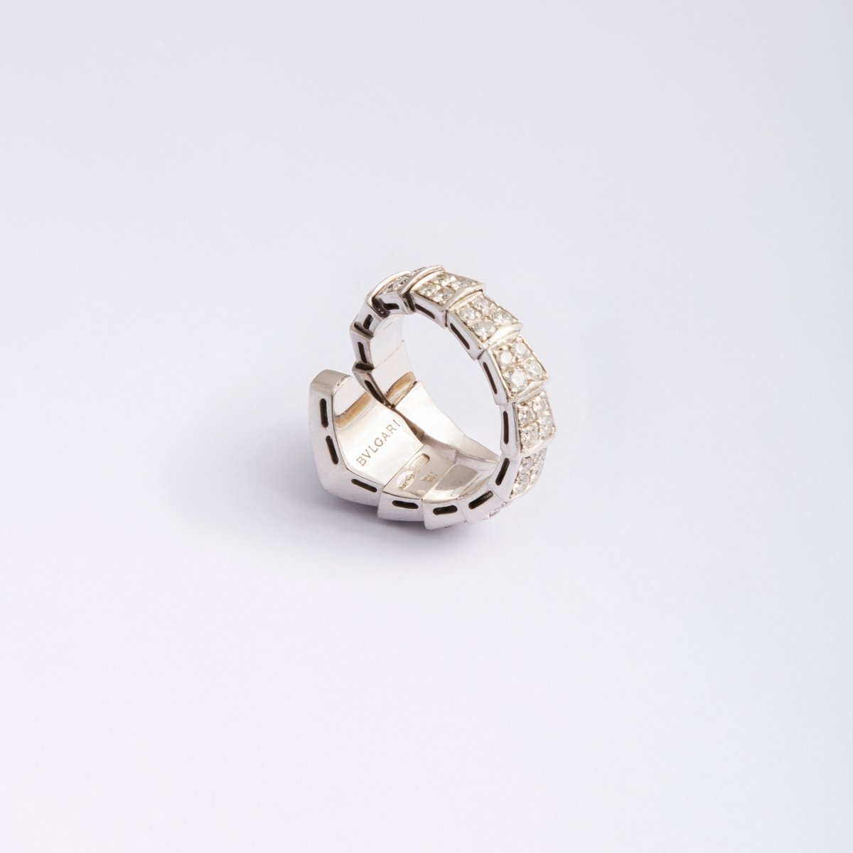 Bague Serpenti Vipère en or blanc 18 carats sertie de diamants. Poids brut : 9,09 g. Poids des diamants : 1,74 cts. Tour de doigt : 51 Très bon état. Cette bague a été authentifiée par nos experts joailliers.