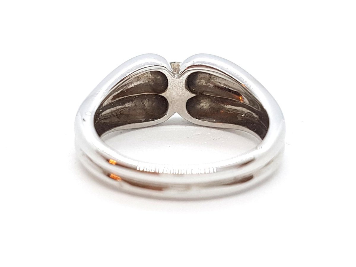 Solitaire en or blanc 750 millièmes (18 carats). serti d'un diamant taille brillant G-H SI de 0.32 ct. tour de doigt: 54. largeur sur le dessus: 0.8 cm. état neuf. poinçon tête d'aigle. poids total: 8.10 g
