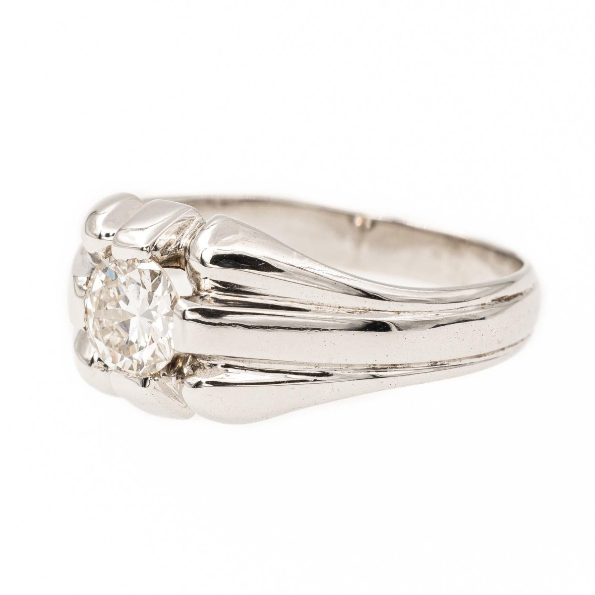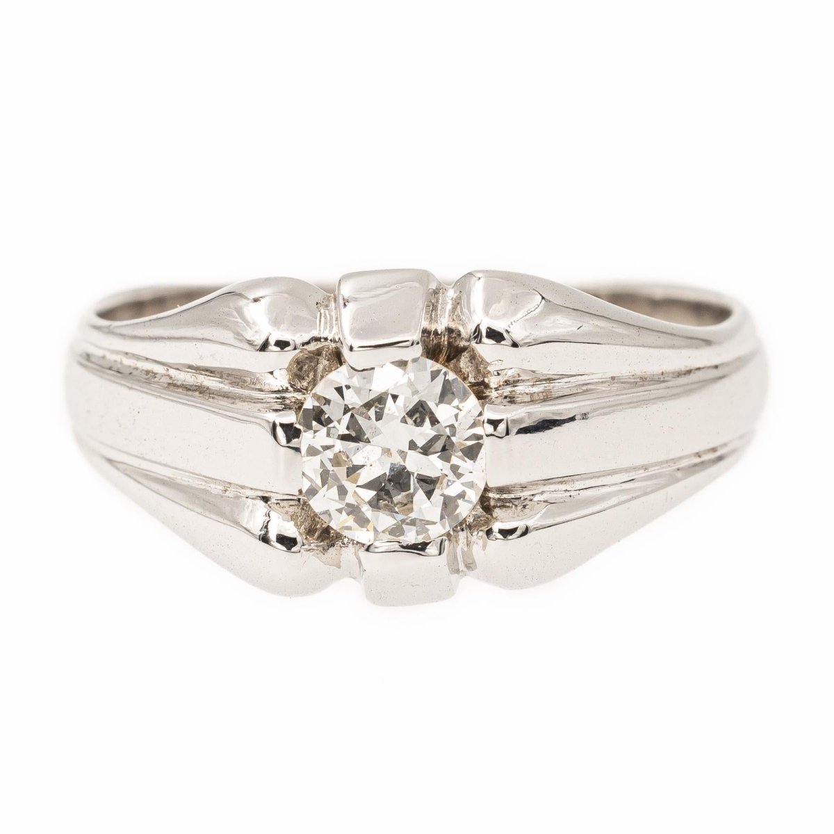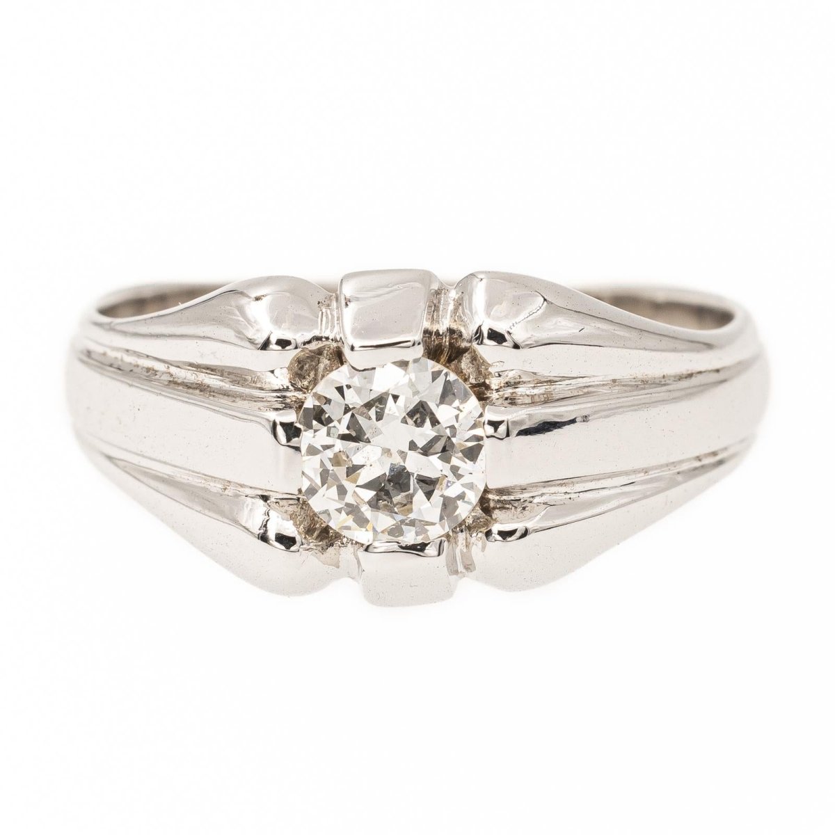 Bague solitaire en or blanc 750 millièmes (18 carats). sertie d’un diamant taille ancienne. d'un poids total d’environ 0.47 ct. largeur sur le dessus: 0.90 cm. taille de doigt: 54. poids total: 4.30 g. poinçon tête d'aigle. excellent état