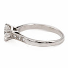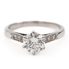 Solitaire en or blanc 750 millièmes (18 carats). serti de diamants de taille brillant. diamant central environ 1.11 cts. 3 diamants de chaque côté d'environ 0.01 ct chacun. Poids total estimé des diamants: 1.17 cts. Tour de doigt: 53. Largeur: 0.77 cm. Poids total: 3.00 g. Poinçon tête d'aigle. Excellent état
