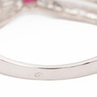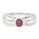 Bague en or blanc 750 millièmes (18 carats). sertie d'un rubis de taille ovale environ 0.30 ct. Tour de doigt: 60. Largeur sur le dessus: 0.65 cm. Poids total: 3.03 g. Poinçon tête d'aigle. état neuf