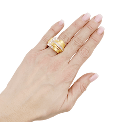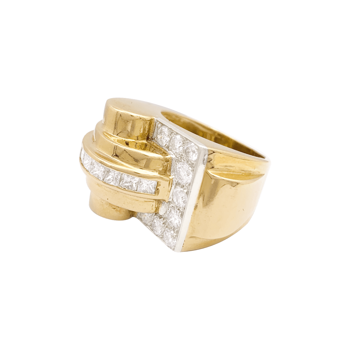 Bague Tank en or jaune 18 carats de forme géométrique sertie de diamants taille brillant et taille princesse.