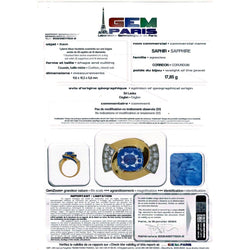 Bague Tank en or rose 18 carats et platine sertie au centre d’un saphir taille coussin. Elle présente un décors d'enroulements pavés de diamants et soulignés d'une ligne de saphirs calibrés. Certificat Gem Paris : Ceylan, Non chauffé.