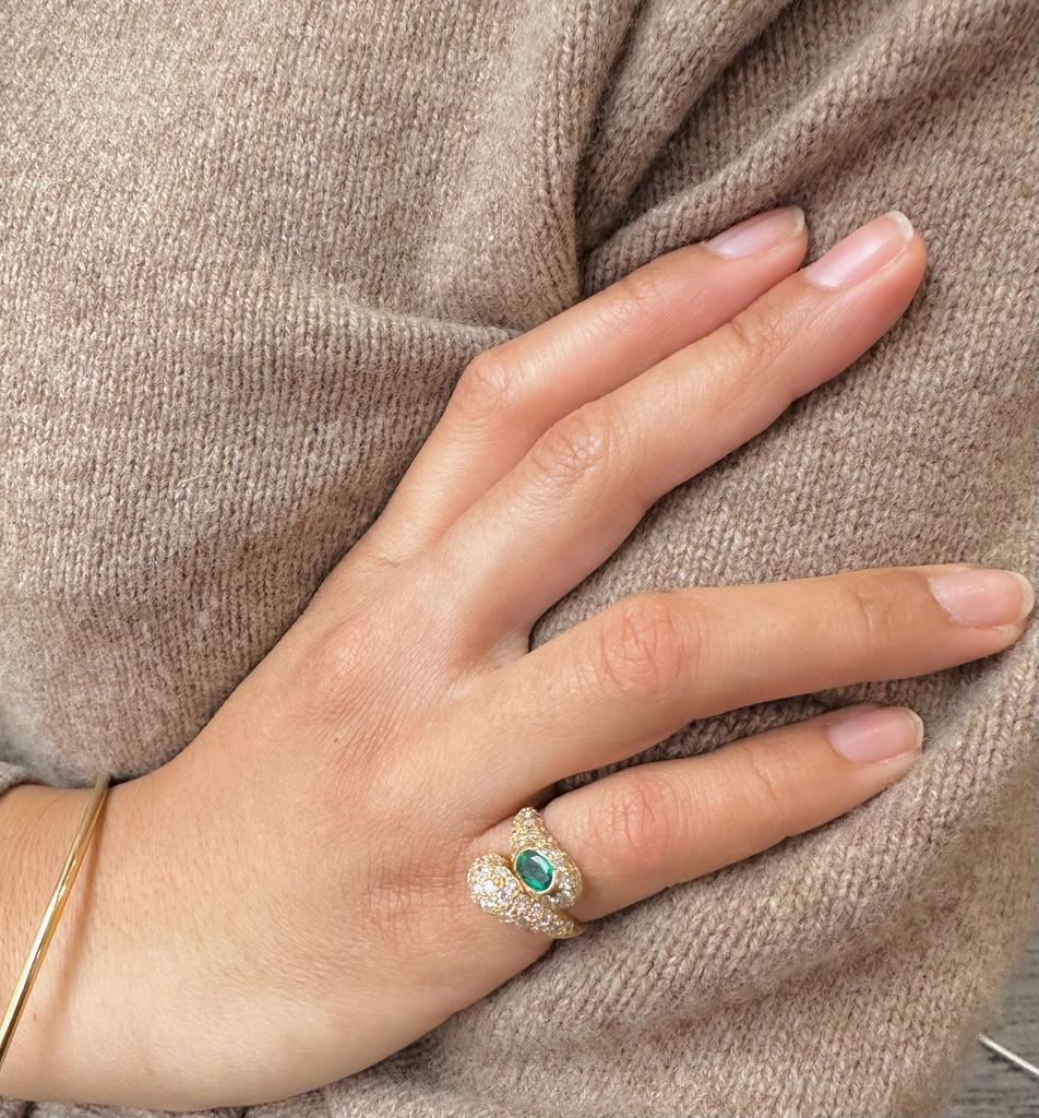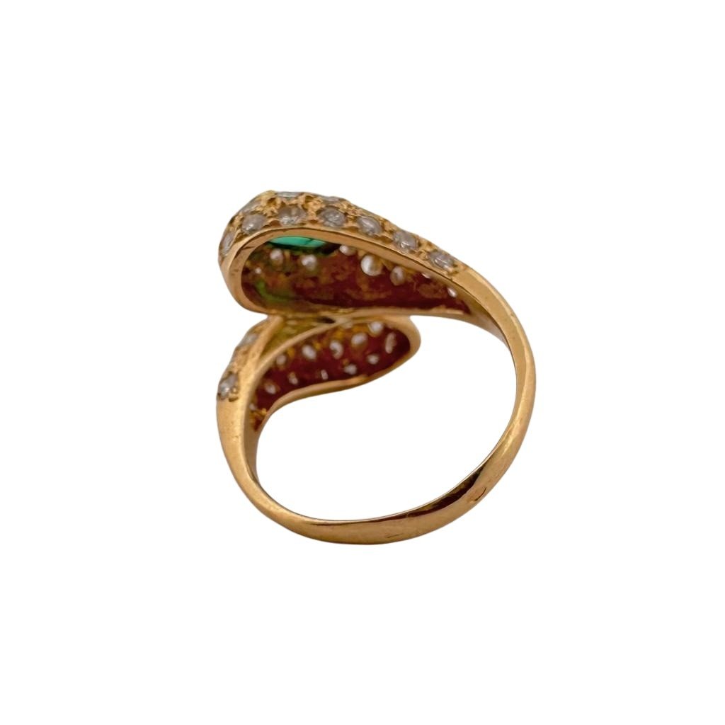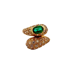Bague Toi et moi en or jaune 18 carats, émeraude et diamants.