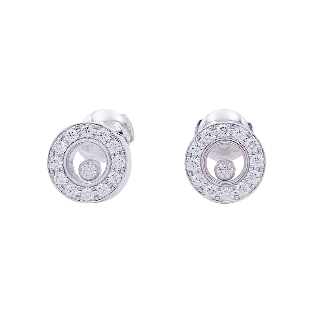 Boucles d'oreilles CHOPARD "Happy Diamonds" en or blanc et diamants.