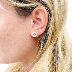 Paire de boucles d'oreilles CHOPARD collection "Happy Diamonds" en or blanc 18 carats et sertis de diamants taille brillant retenant en leur coeur un diamant mobile. Largeur : 10 mm Poids total : 7,4 g Poids du diamant : 0,38 carat Prix neuf : 5640€