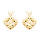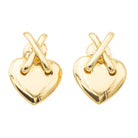 Boucles d'oreilles. en or jaune 750 millièmes (18 carats). figurant sur chaque boucle un coeur lisse en or jaune. surmonté d'un lien croisé en or jaune. dimensions: 2.19 cm X 1.58 cm. poids total: 8.57 g. fermoir alpa. poinçonné tête d'aigle. excellent état.