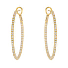 Créoles diamants en or jaune 750 millièmes (18 carats) testé. serties de 96 diamants au total. taille brillant. pour un total de 0.85 ct. pavage tour complet (demi interieur et demi extérieur). diamètre : 3 cm. largeur : 0.17 cm. poids total : 5.09 ct. jamais portées. excellent état