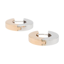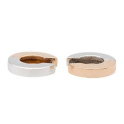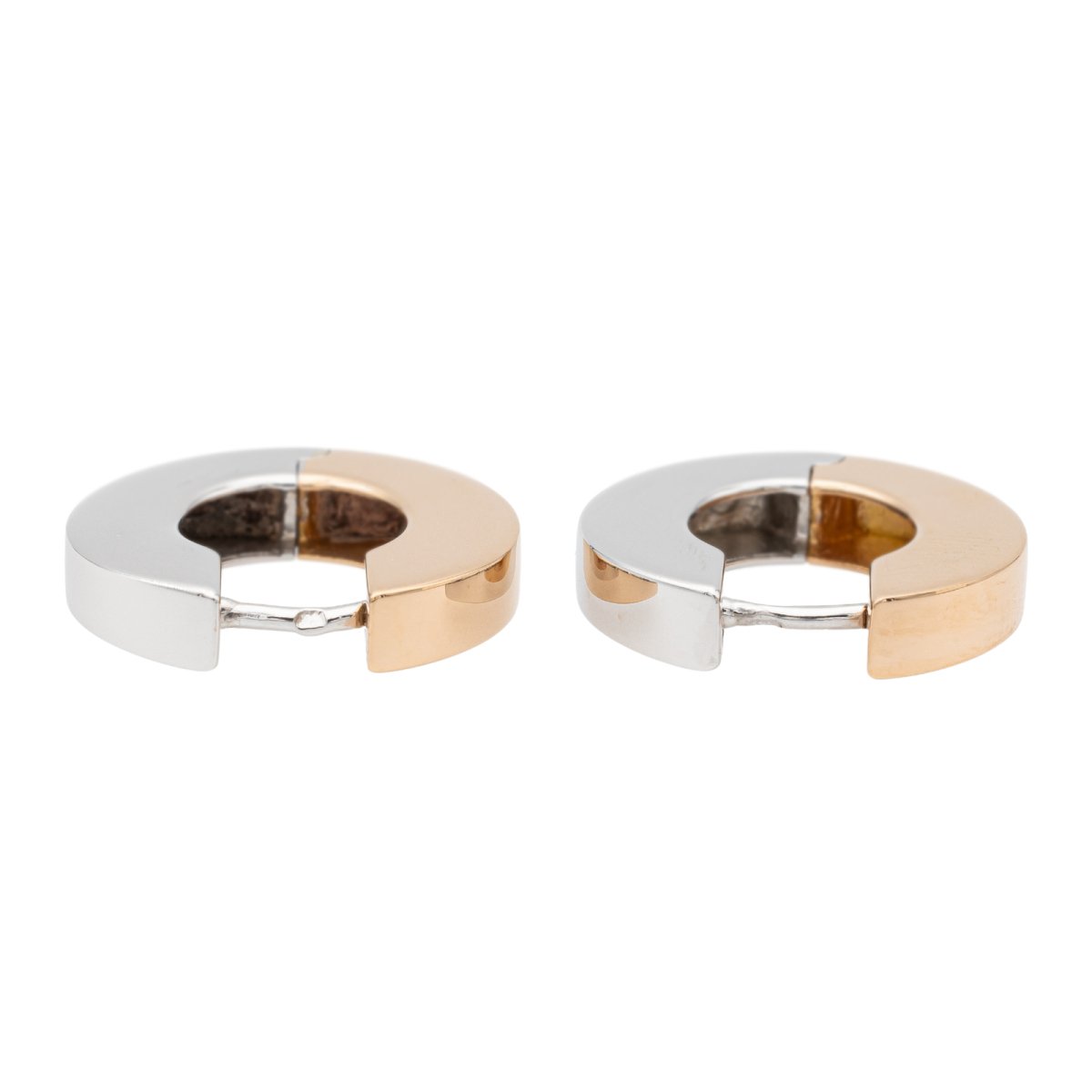 Créoles en or rose et blanc 750 millièmes (18 carats). fil carré. diamètre: 1.73 cm. largeur: 0.36 cm. poids total: 7.77 g. poinçon tête d’aigle. excellent état