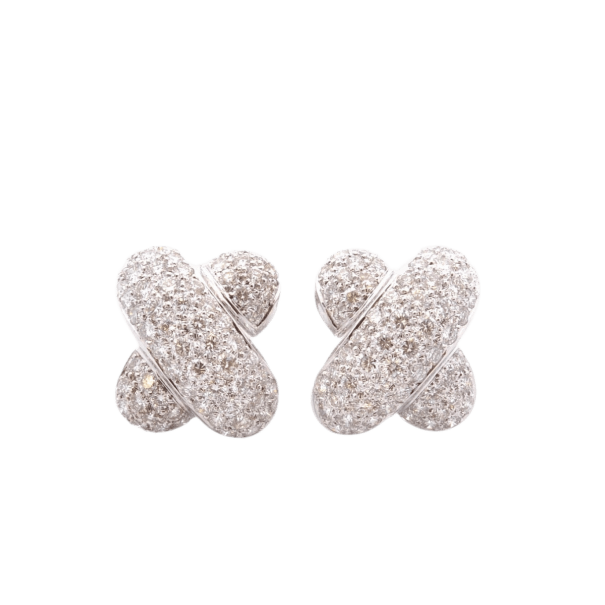 Boucles d'oreilles en or blanc 18 carats serties de 128 diamants