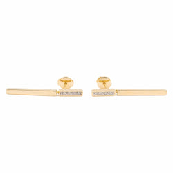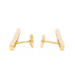 Boucles d’oreilles pendantes en or jaune 750 millièmes (18 carats). sertie de huit diamants taille brillant. d’un poids total de 0.08 ct. dimensions: 3.16 cm x 0.24 cm. poids total: 3.9 g. poinçon tête d’aigle. excellent état