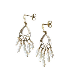 Pendants d'oreilles en or jaune 18kt (poinçon: hibou) ornées de franges de perles de culture. Travail Vintage. Poids brut: 4,51 g Hauteur: 4,30 cm Largeur: 1.50 cm État: très légères micro rayures sur les parties or, voir photos. Les perlessont unematière organique sensible. Il sera donc préférable d'ôter vos boucles d'oreilles lors de votre douche. Pour d'autres conseils d'entretien rendez-vous surnotre article. Toutes nos boucles d'oreilles anciennes.