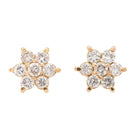 Boucles d'oreilles Puces fleurs en or jaune et diamants