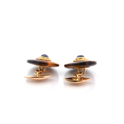 Boutons de Manchette en or jaune, oeil de tigre et saphirs