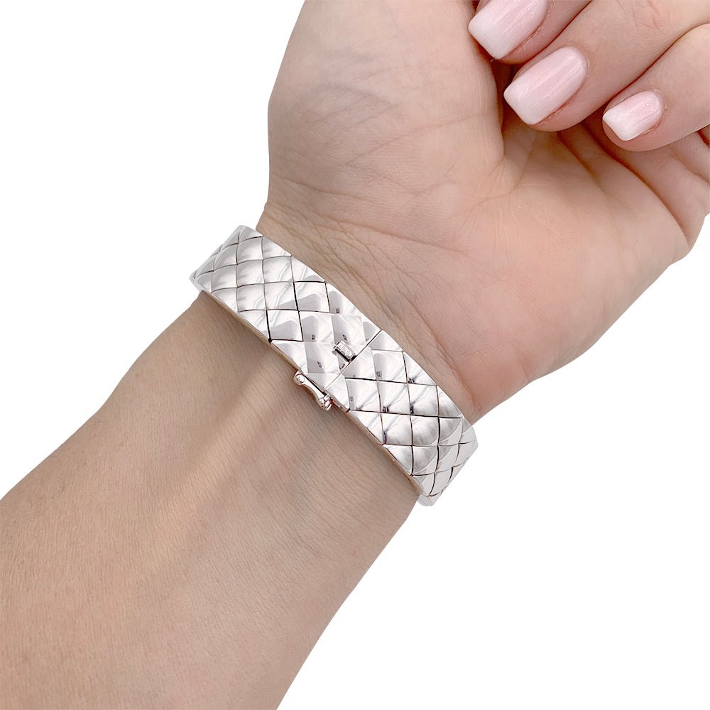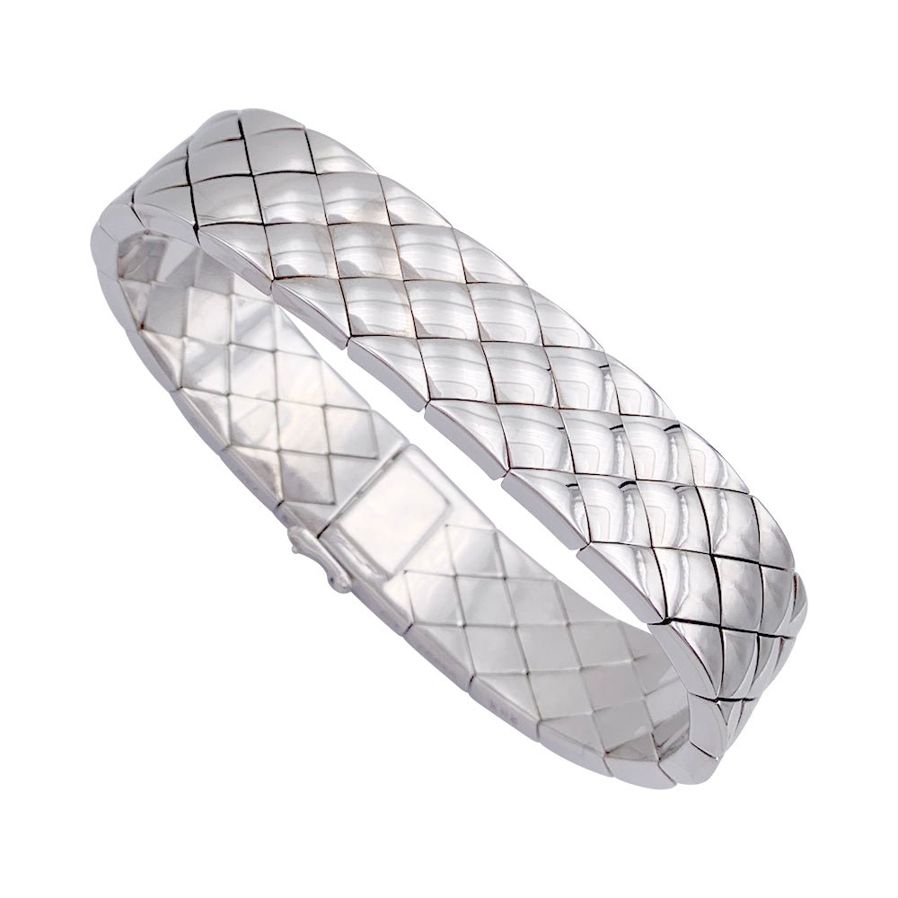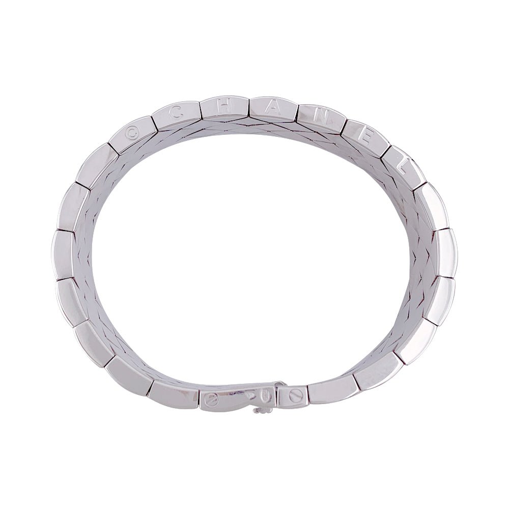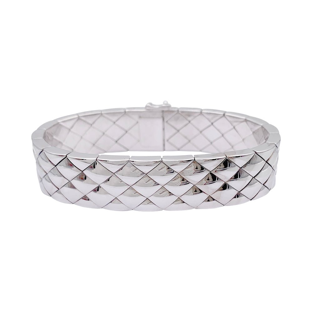 Un bracelet signé de la Maison Chanel, collection “Matelassé', composé d'une maille semi articulé figurant le célébre motif matelassé. Taille S. Longueur : Taille 16 Largeur : 13 mm Poids : 87 grammes