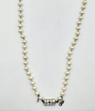 Bracelet de trois rangs de perles en chute, fermoir en argent orné de brillants. Certaines perles sont de couleur beige Poids total : 15,19 g. Longueur : 18 cm.