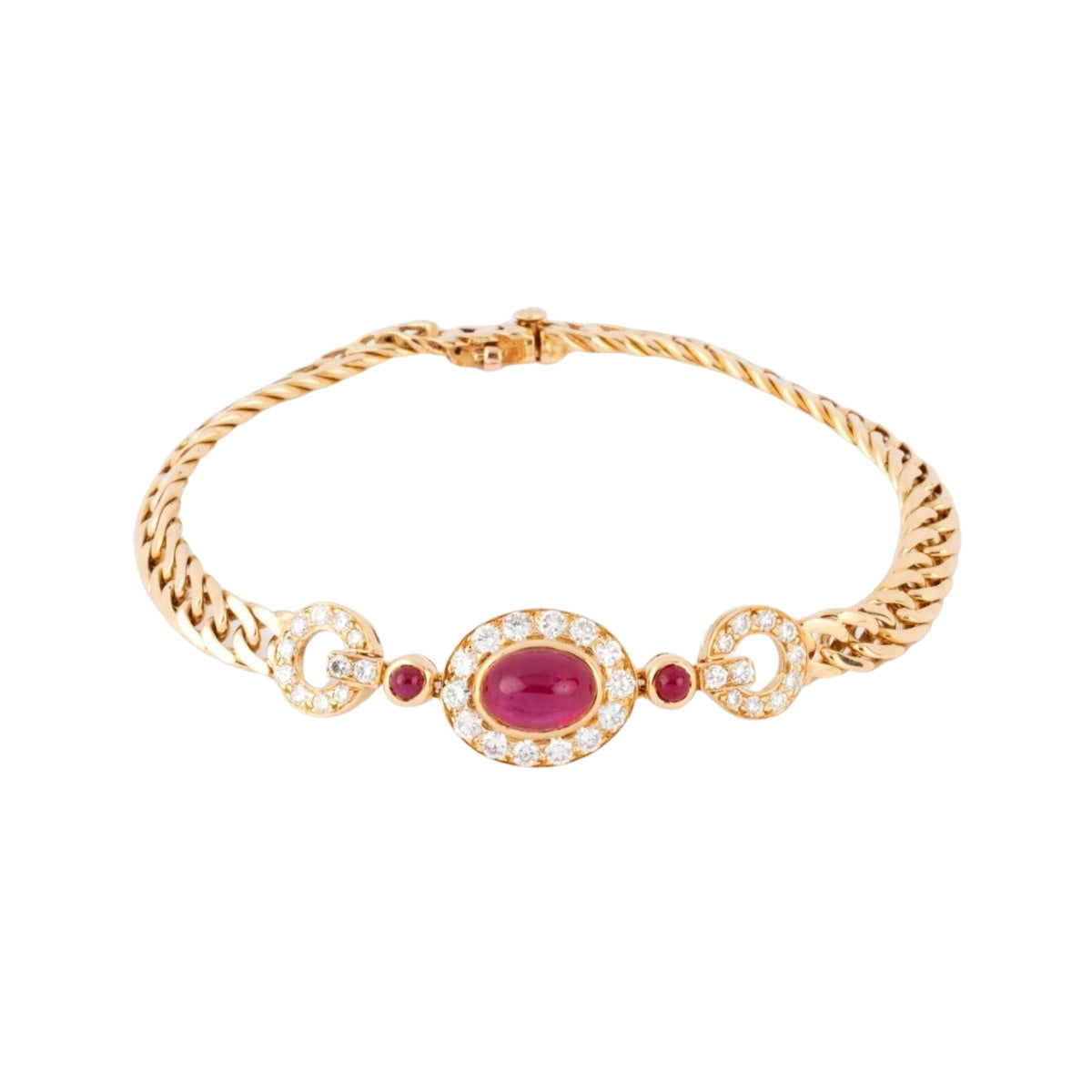 Bracelet en or jaune et diamant ,rubis cabochon de la maison Van Cleef and Arpels