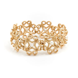 Bracelet Manchette fil torsadé en or jaune et perles