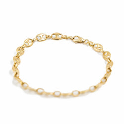 Bracelet en or jaune 750 millièmes (18 carats). maille grain de café. Longueur: 23 cm. Largeur: 0.60 cm. Poids total: 12.51 g. Poinçon tête d'aigle. Excellent état