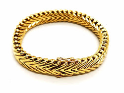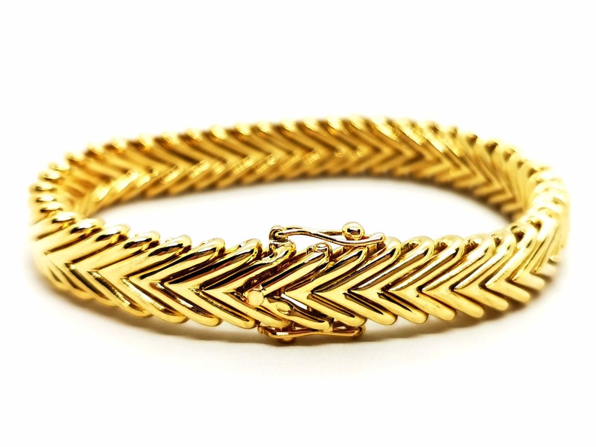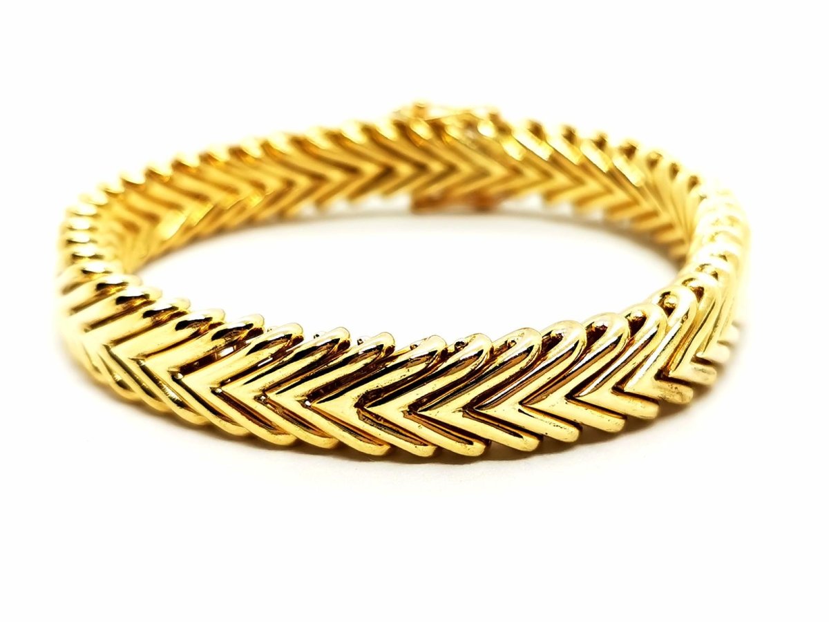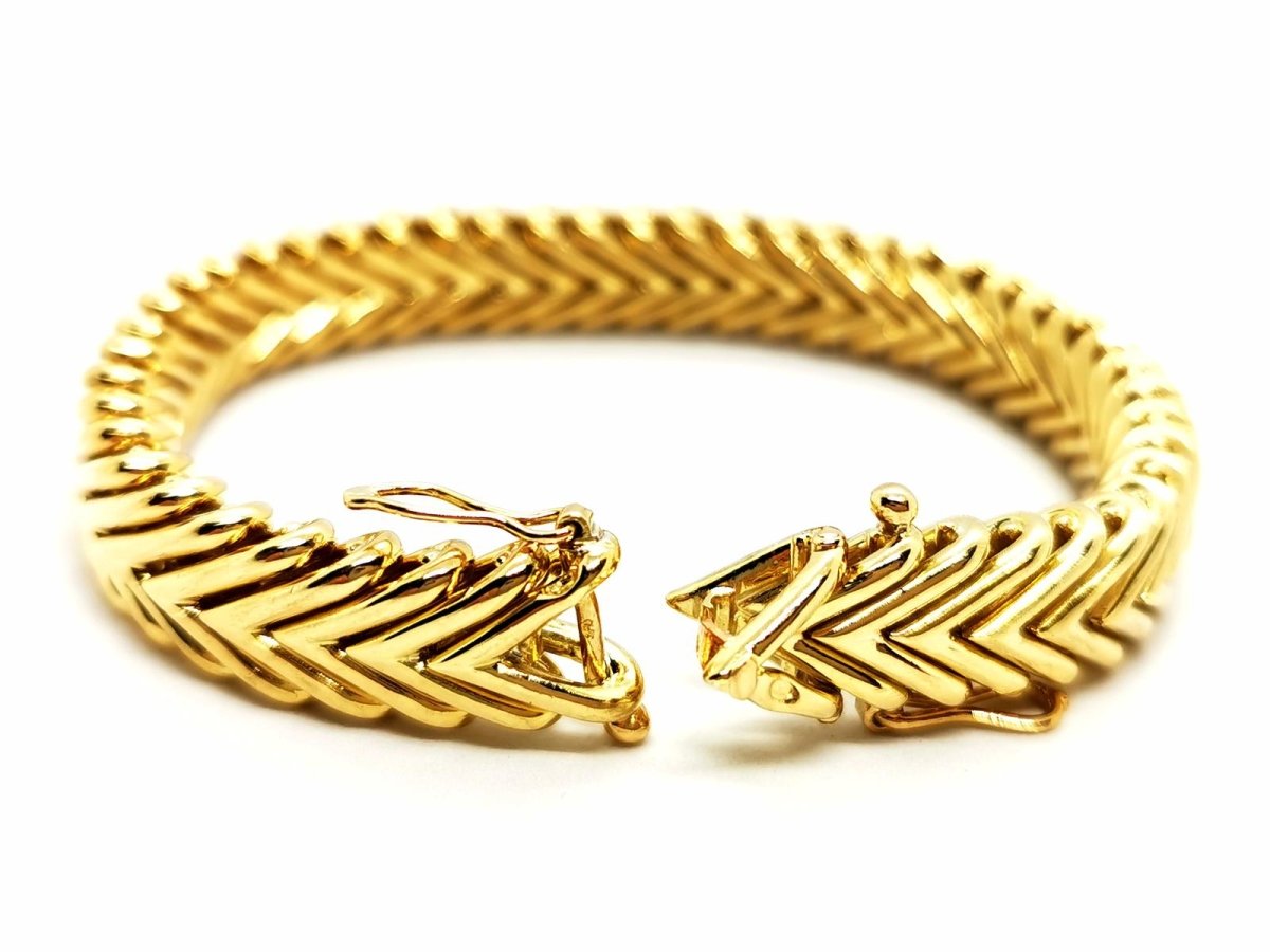 Bracelet en or jaune 750 millièmes (18 carats). maille chevron. fermoir avec double huit de sécurité. longueur: 17.50 cm. largeur: 0.85 cm. épaisseur : 0.56 cm. poids total : 51.03 g. poinçon hibou. excellent état