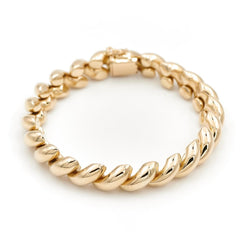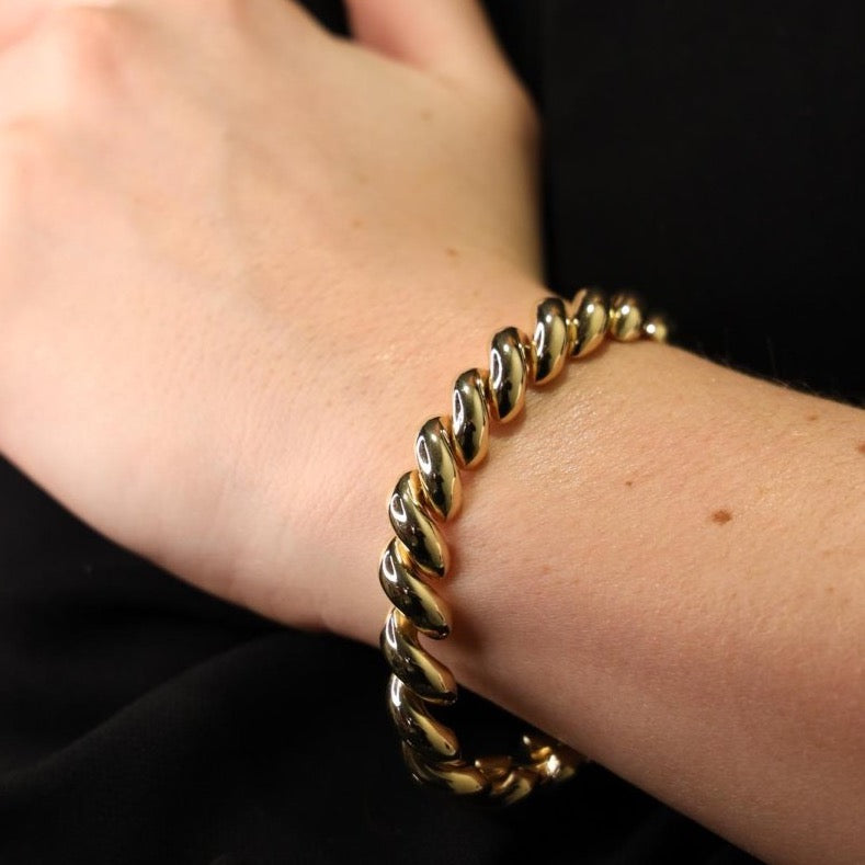 bracelet en or jaune 750 millièmes (18 carats). maille souple. longueur: 18 cm. largeur: 0.93 cm. poids total: 30.41 g. fermoir avec double huit de sécurité. poinçonné tête d'aigle. excellent état.