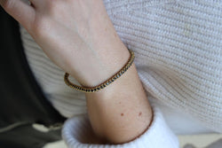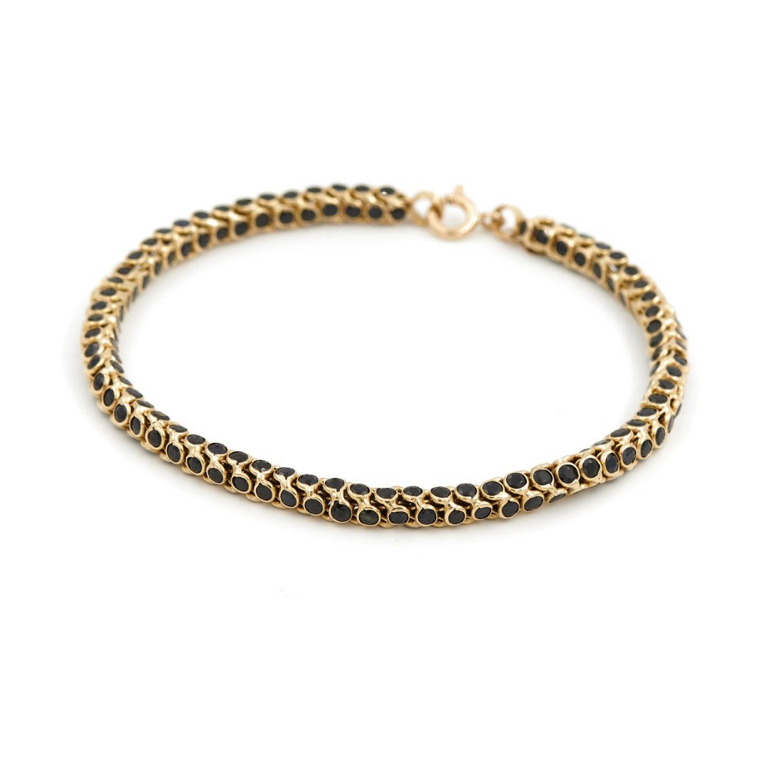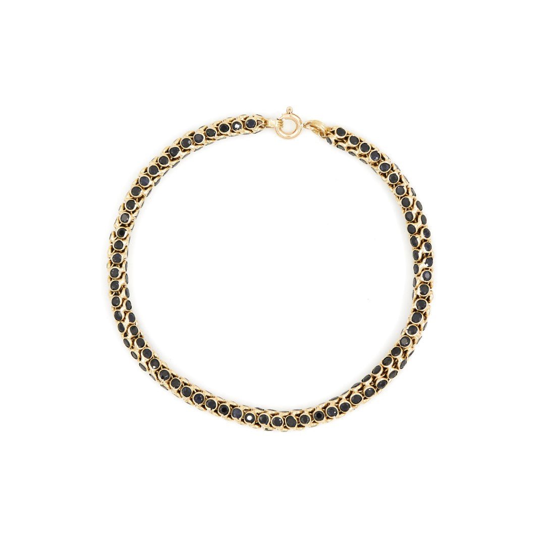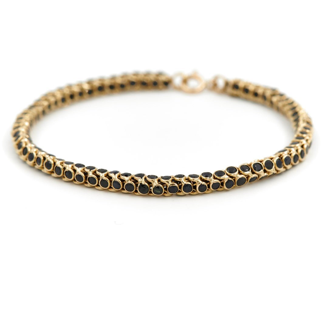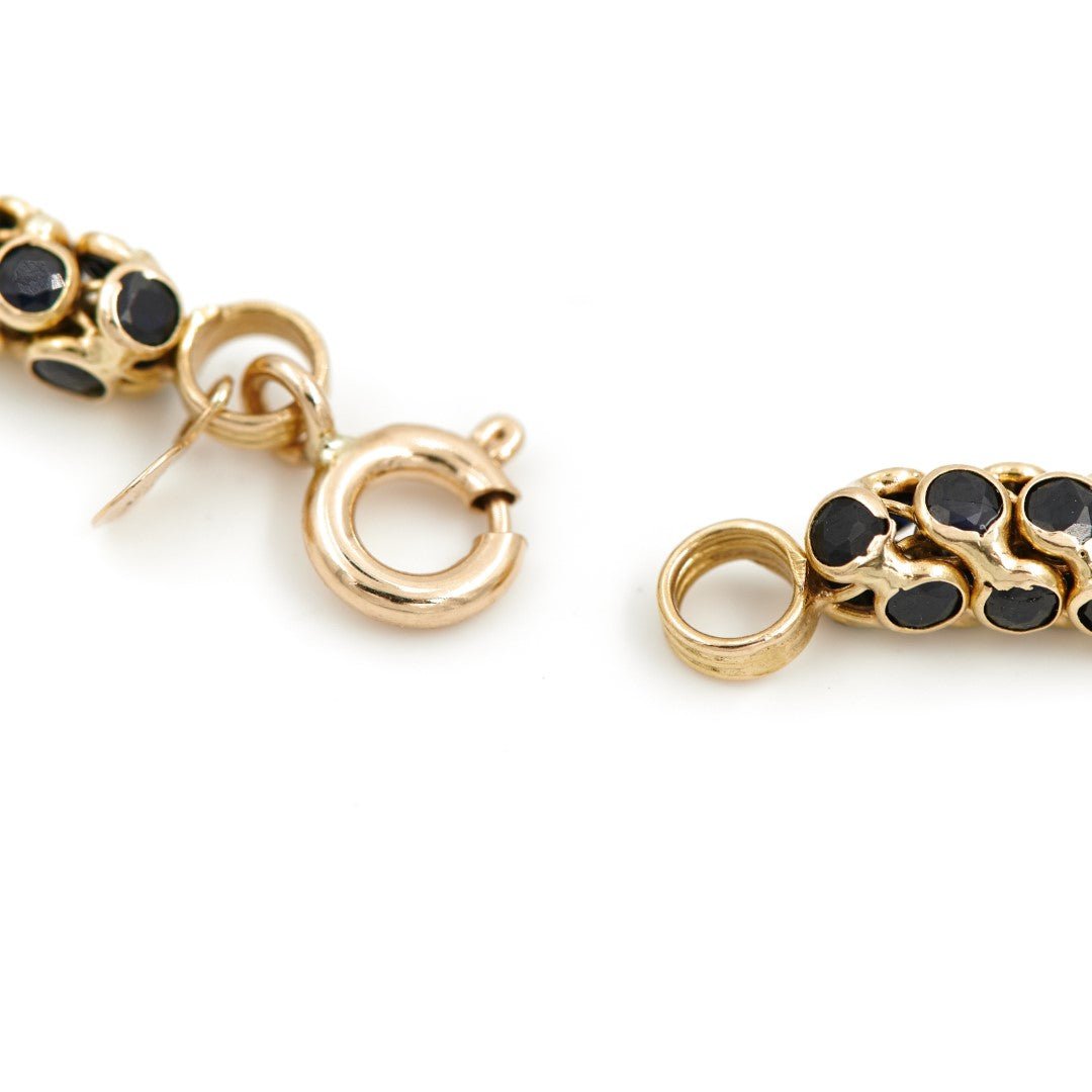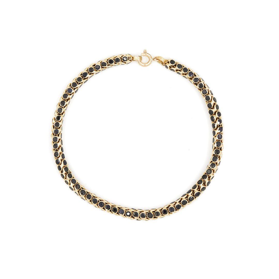 Bracelet en or jaune 750 millièmes (18 carats). 256 saphirs bleu brillant. d'environ 0.02 ct chacun. poids total saphirs : 5.12 cts. longueur du bracelet : 17 cm. largeur : 0.33 cm. poids total : 8.28 g. poinçon tête d'aigle. excellent état