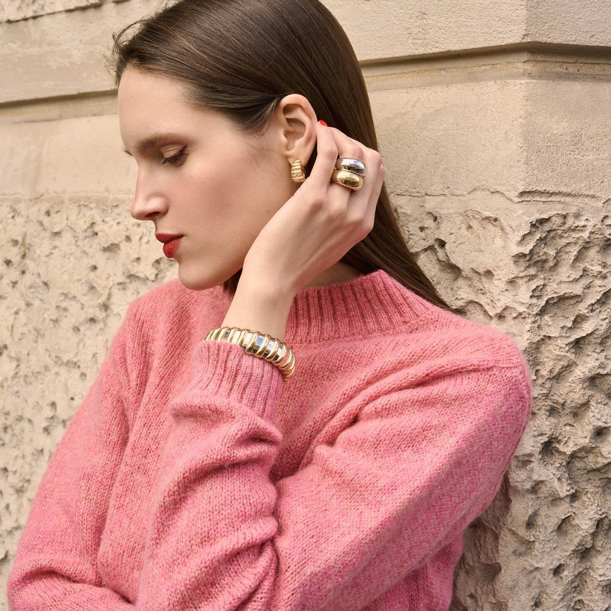 Bracelet rigide BULGARI "Tubogas" en or jaune et acier