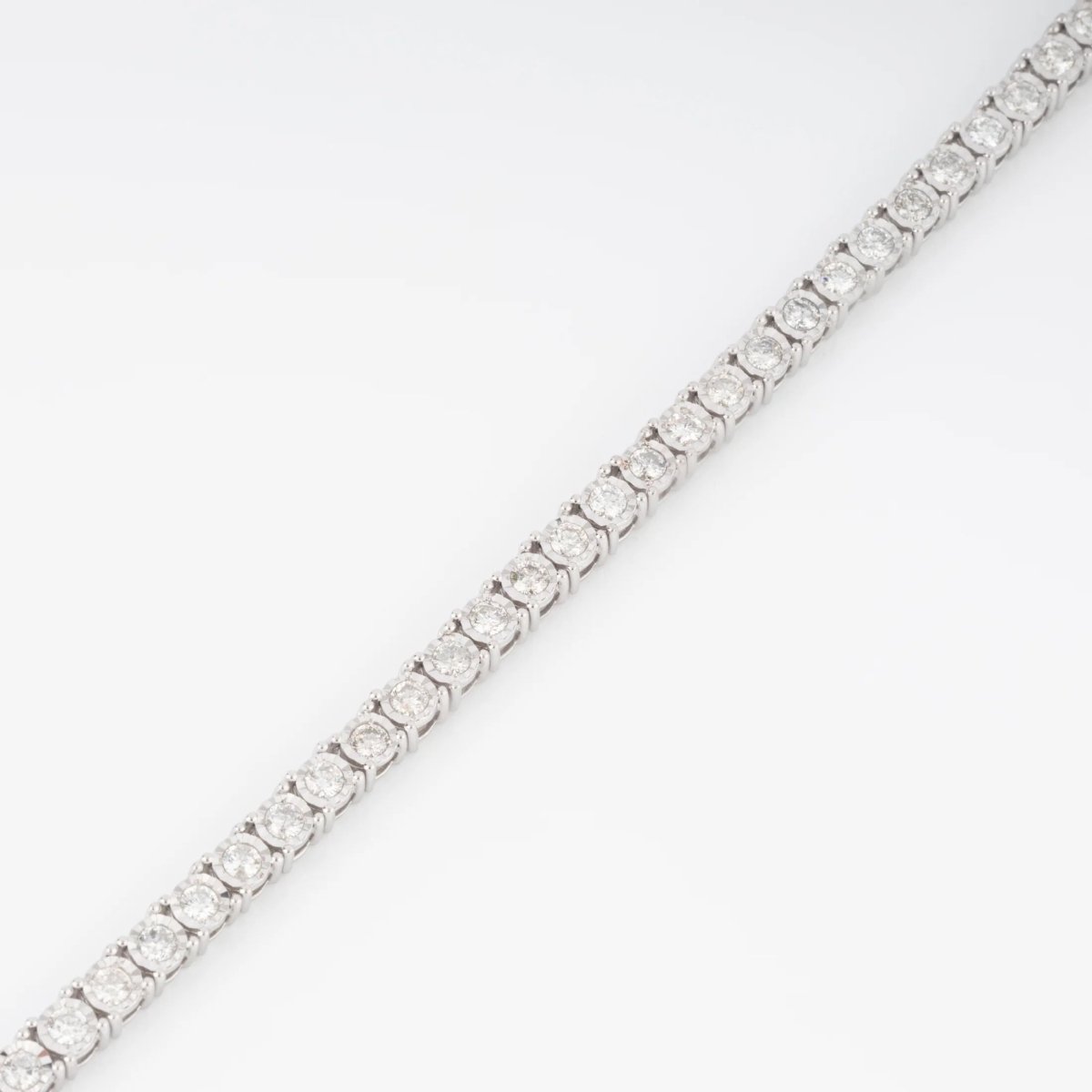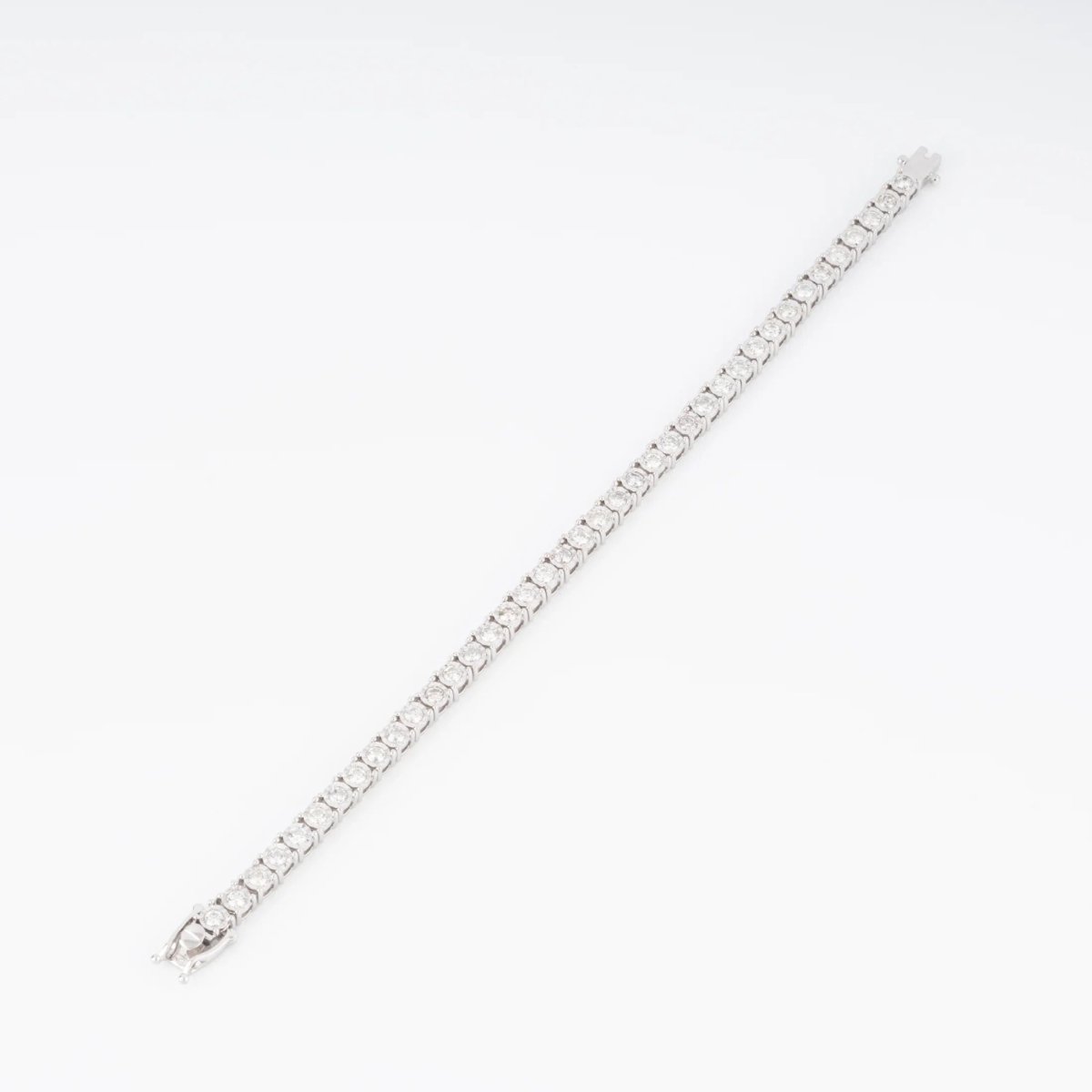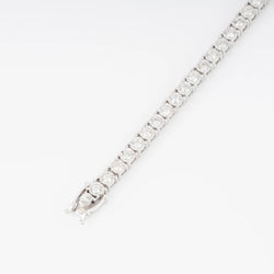 Bracelet rivière et ou gris orné de diamant taille brillant sur sertis en chaton. Matière : Or gris Poinçon : Tête d'aigle Poids : 17,1 grs Longueur : 18,9cm Nombre carat : 3,90 cts Nombre de pierres : 39 Pierres Période : 2000
