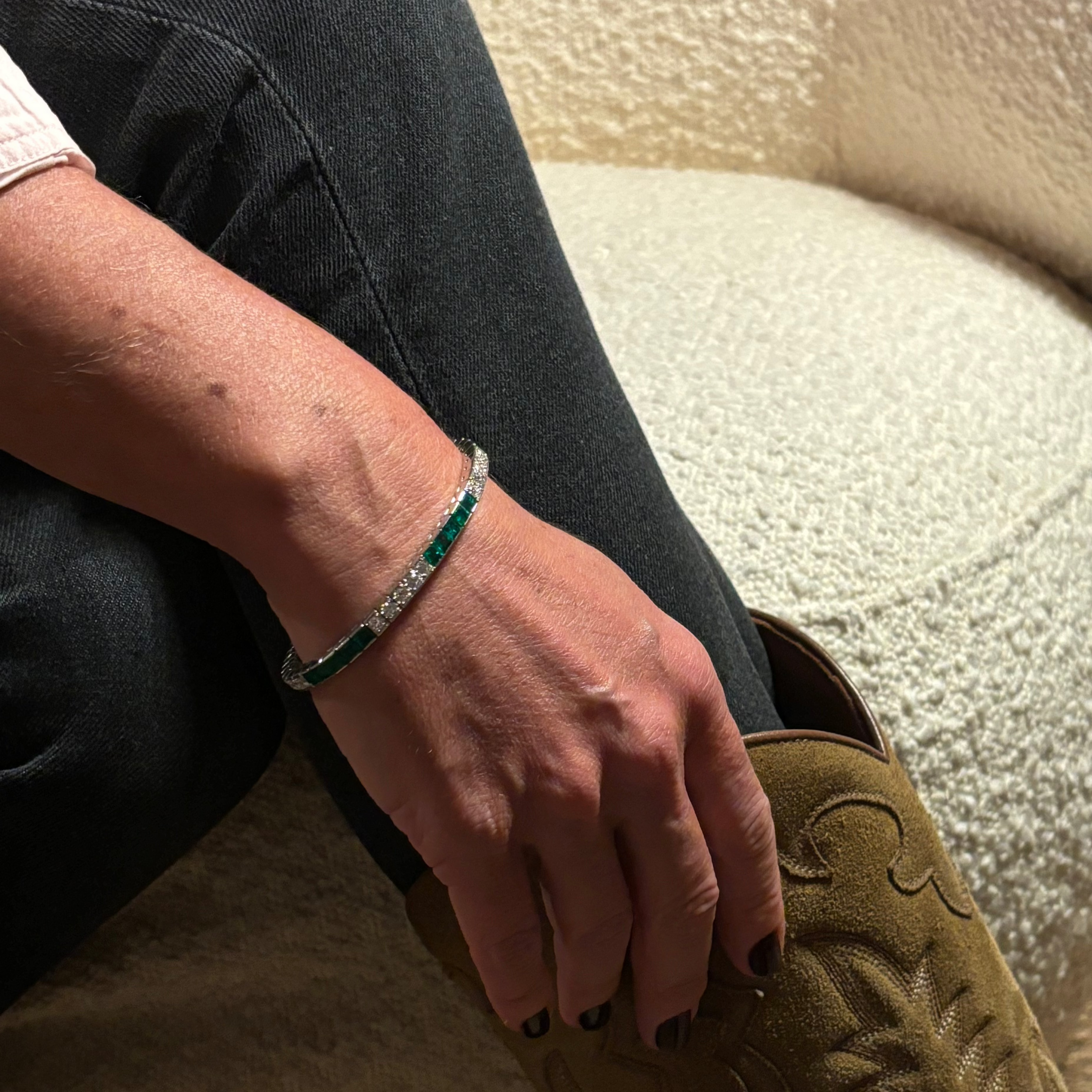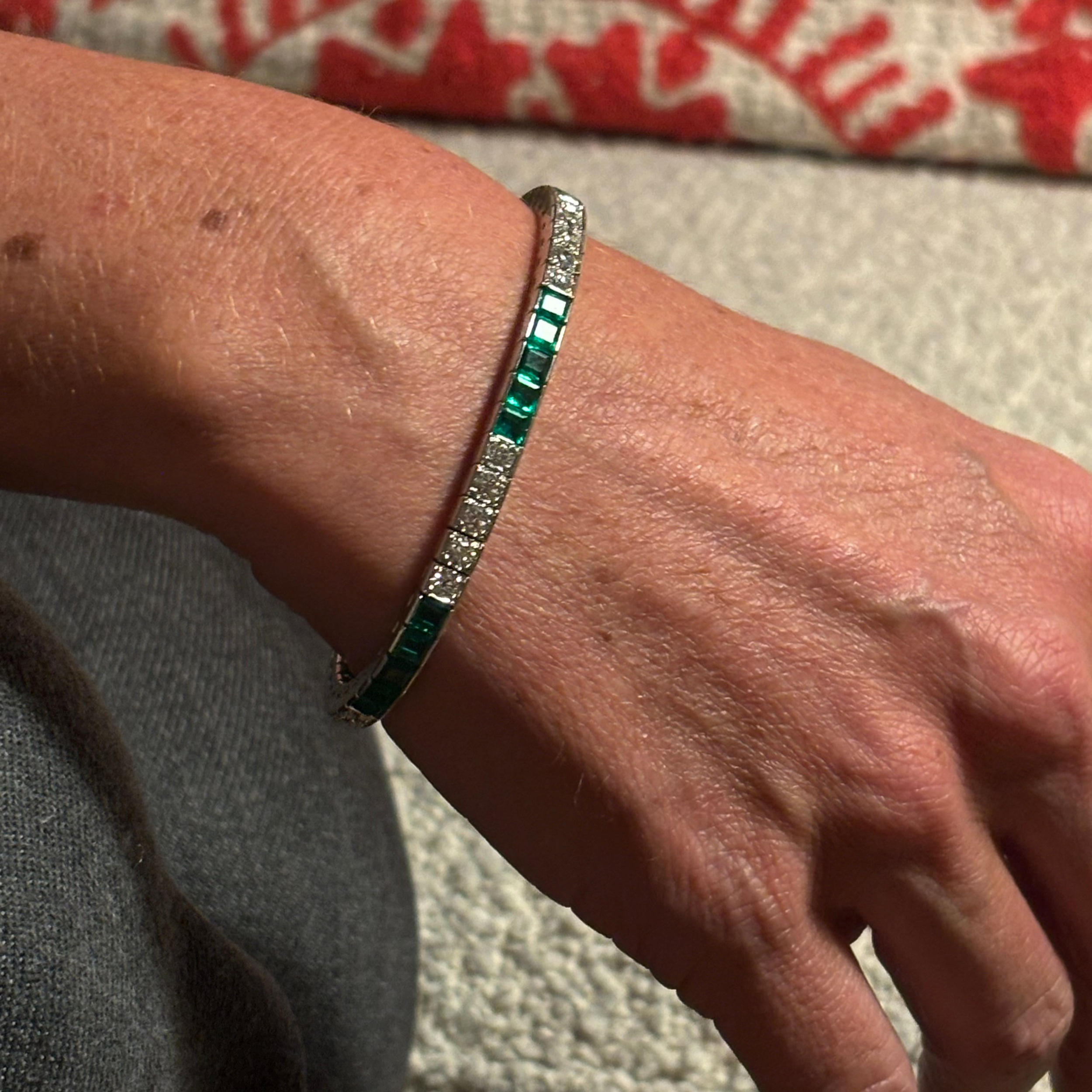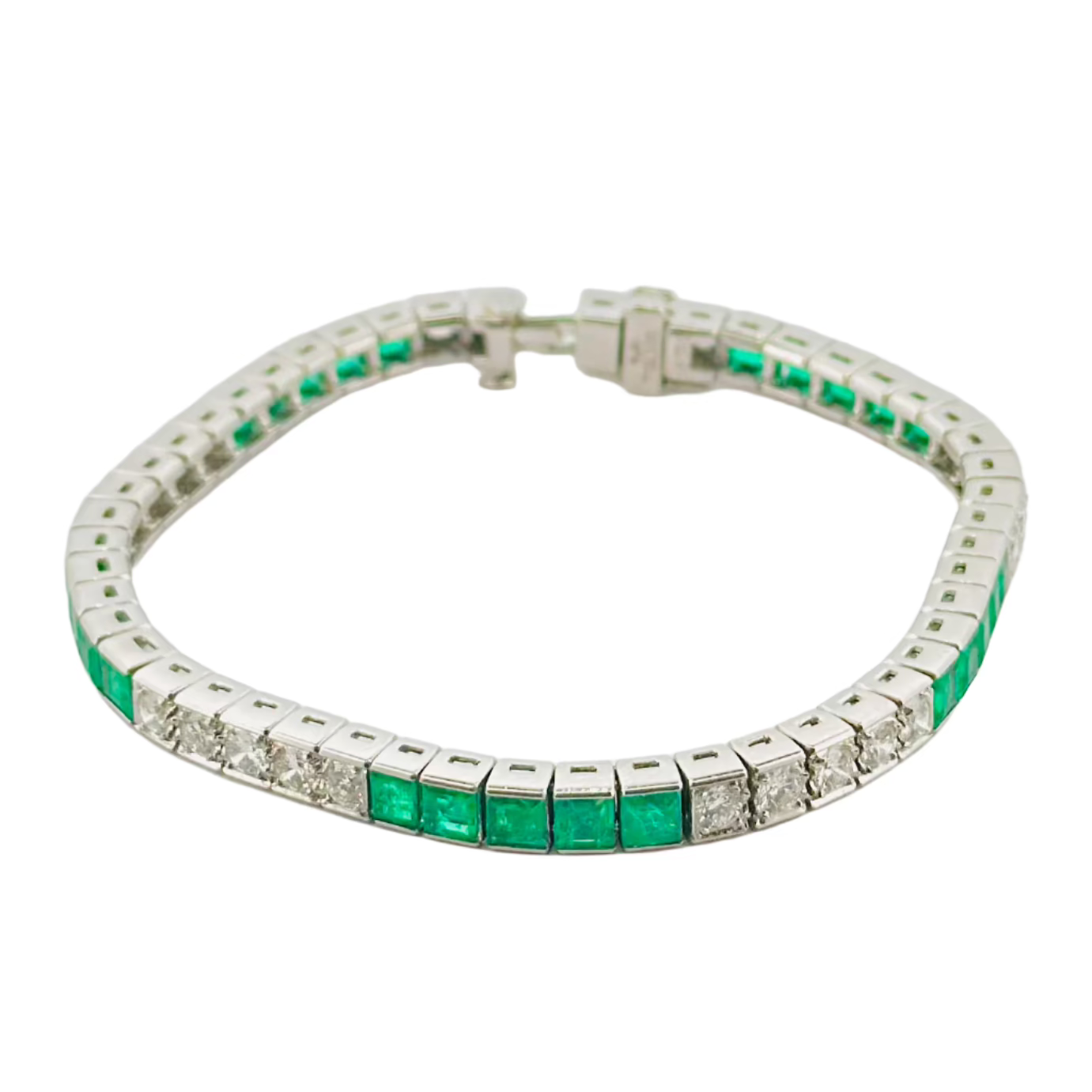 Bracelet Ligne TIFFANY & CO. en platine, émeraudes et diamants