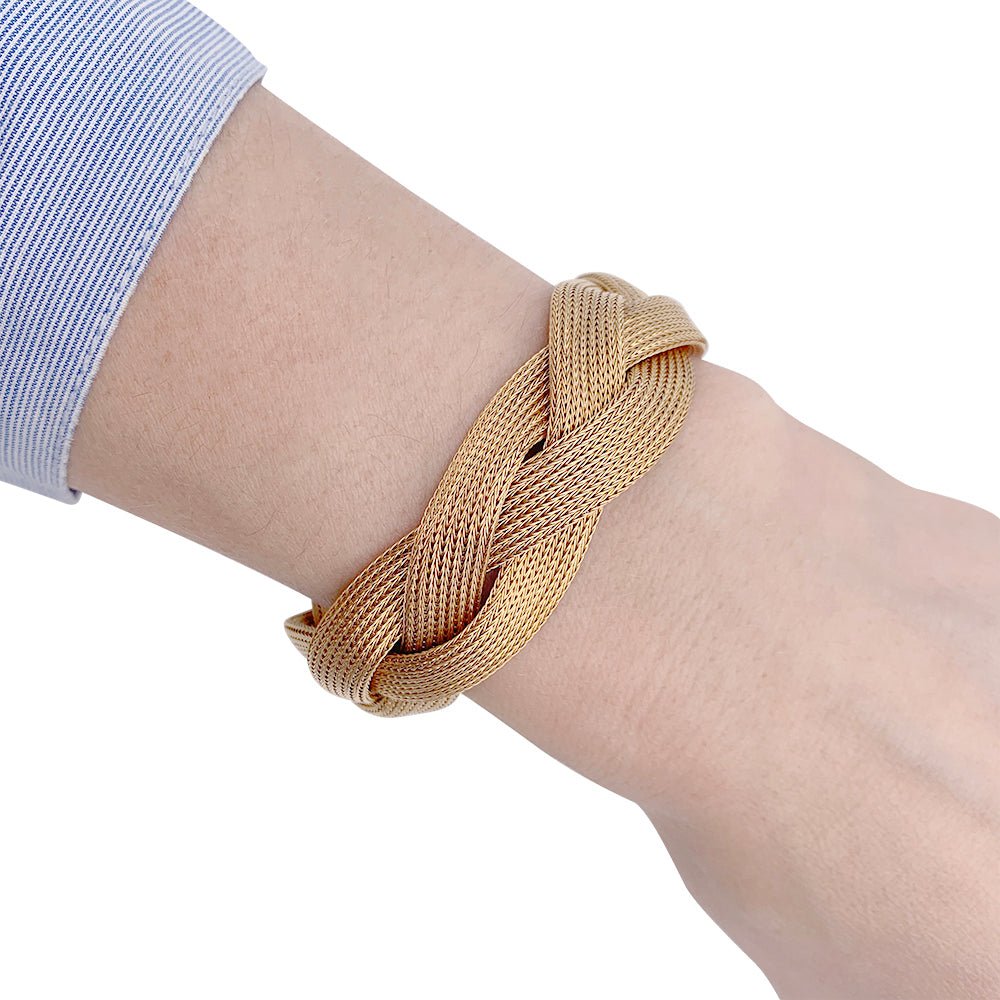Un bracelet vintage en or jaune 750/000 figurant une tresse en maille tissée. Longueur : 17,5 grammes Largeur : 20 mm Poids : 41,5 grammes