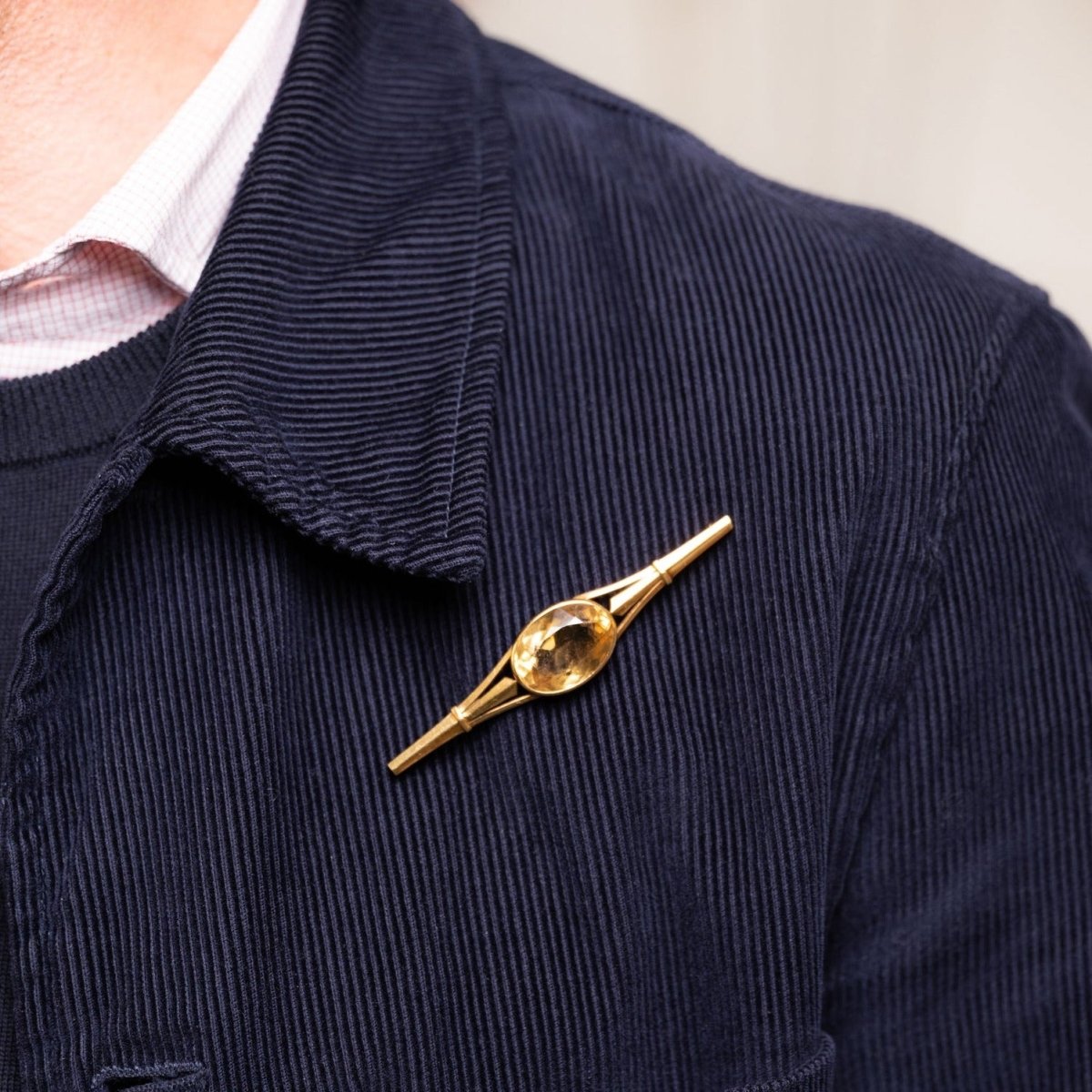 Broche en or jaune 18 carats, ornée d'une importante citrine facettée au centre.