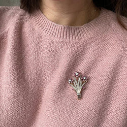 Broche Pendentif Fleur Belle Epoque en Or, Argent, Diamants et Rubis