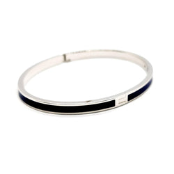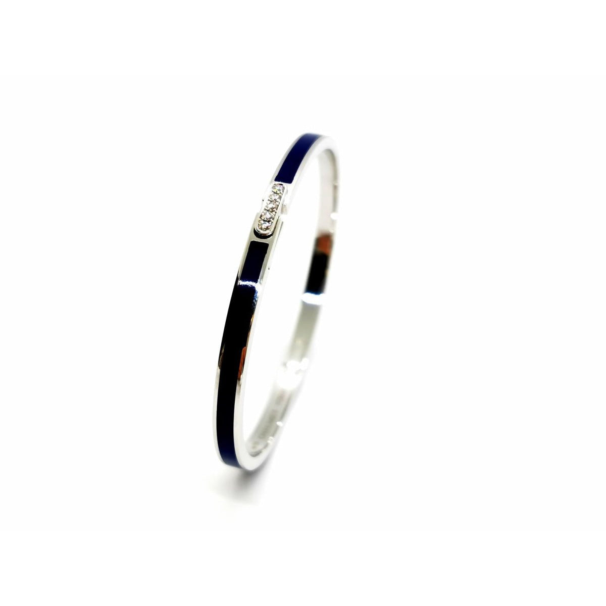 Bracelet signé de la maison Chaumet. collection Liens Evidence. en or blanc 750 millièmes (18 carats). et laque bleue. lien serti de 5 diamants. taille brillant. d'environ 0.01 ct chacun. poids total diamants: environ 0.05 ct. forme ovale. taille: 15 cm. largeur: 0.35 cm. poids total: 14.43 g. poinçon tête d'aigle. signé et numéroté. prix neuf: 4690€. excellent état. jamais porté.