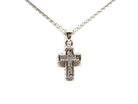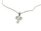 Collier et pendentif en or blanc 750 millièmes (18 carats). maille forçat. pendentif en forme de croix serti clos de 28 diamants taille princesse d'environ 0.03 ct chacun et de 16 diamants sur les tranches taille brillant d'environ 0.005 ct chacun. total poids des diamants: environ 1.2 ct. longueur: 40 cm. largeur: 0.14 cm. dimensions pendentif (avec la béllière): 2.84 cm x 1.41 cm. épaisseur pendentif: 0.31 cm. poids total: 7.03 g. poinçon tête d'aigle. excellent état