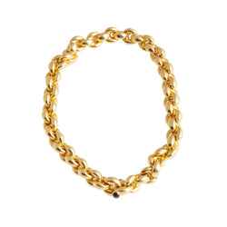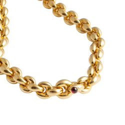 Collier en or jaune 18 carats à mailles "grains de café", fermoir mousqueton à ressort rehaussé de cabochons de grenat.