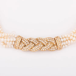 Collier en perles multirangs et fermoir en diamants