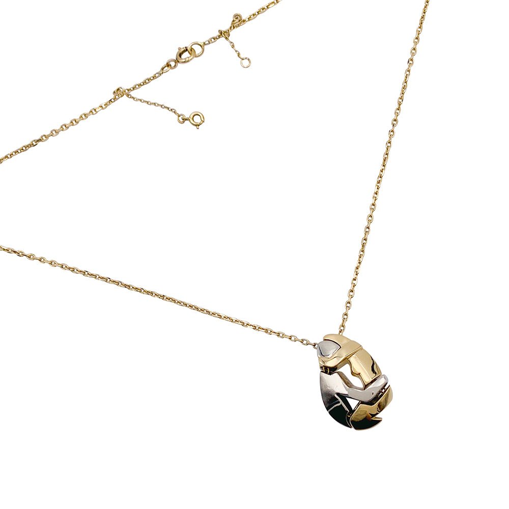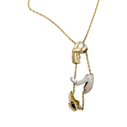 Un collier né de la collaboration de la Maison Fred et de l'artiste Miroslav Brozek, 'Le Couple', composé d'une chaîne en or jaune retenant un pendentif articulé figurant un couple entrelacé en or jaune et blanc 750/000. Longueur : 450 mm Poids : 28,55 grammes