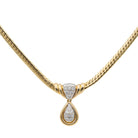 Collier en or jaune et or blanc 750 millièmes (18 carats). maille anglaise. serti de 14 diamants taille brillant. chacun d'un poids d'environ 0.02 ct. longueur: 47 cm. dimensions du motif: 2.19 cm x 1.53 cm. poids total: 11.40 g. poinçon tête d’aigle. excellent état