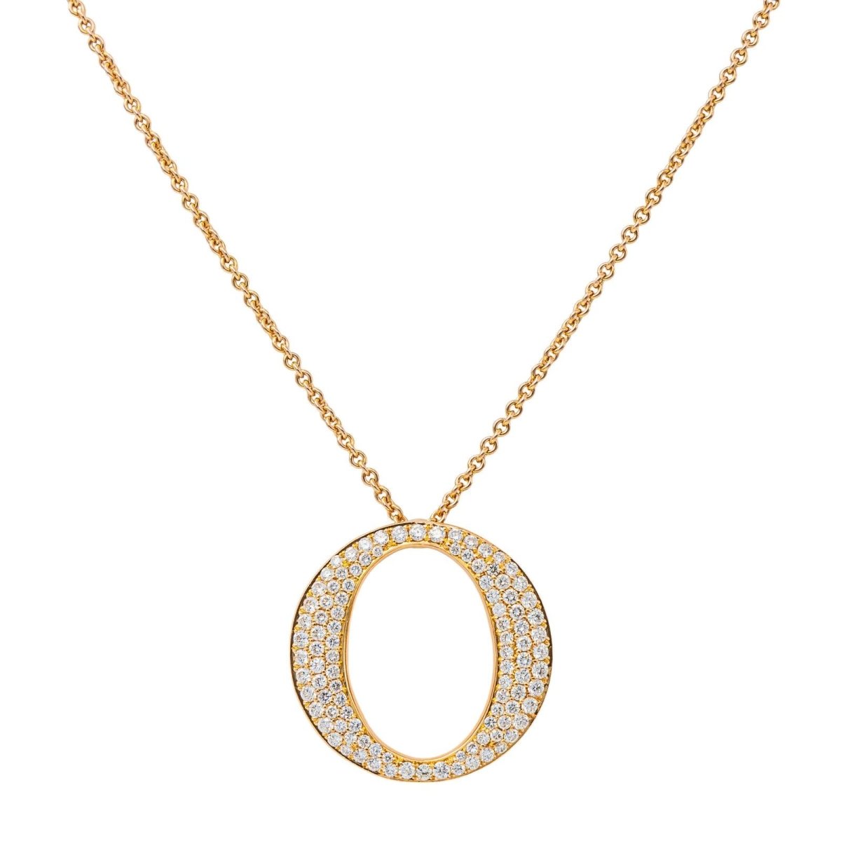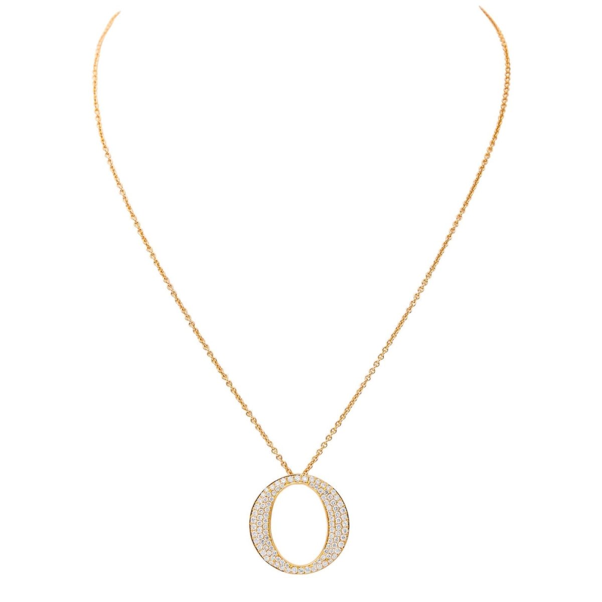 Collier en or rose 750 millièmes (18 carats). orné d'un pendentif serti de 102 diamants de taille brillant d'un poids total de 1.02 cts. longueur de la chaine: 45.5 cm. dimensions du pendentif: 2.55 x 2.55 cm. Poids total : 11.48 g. poinçon tête d'aigle. Excellent état
